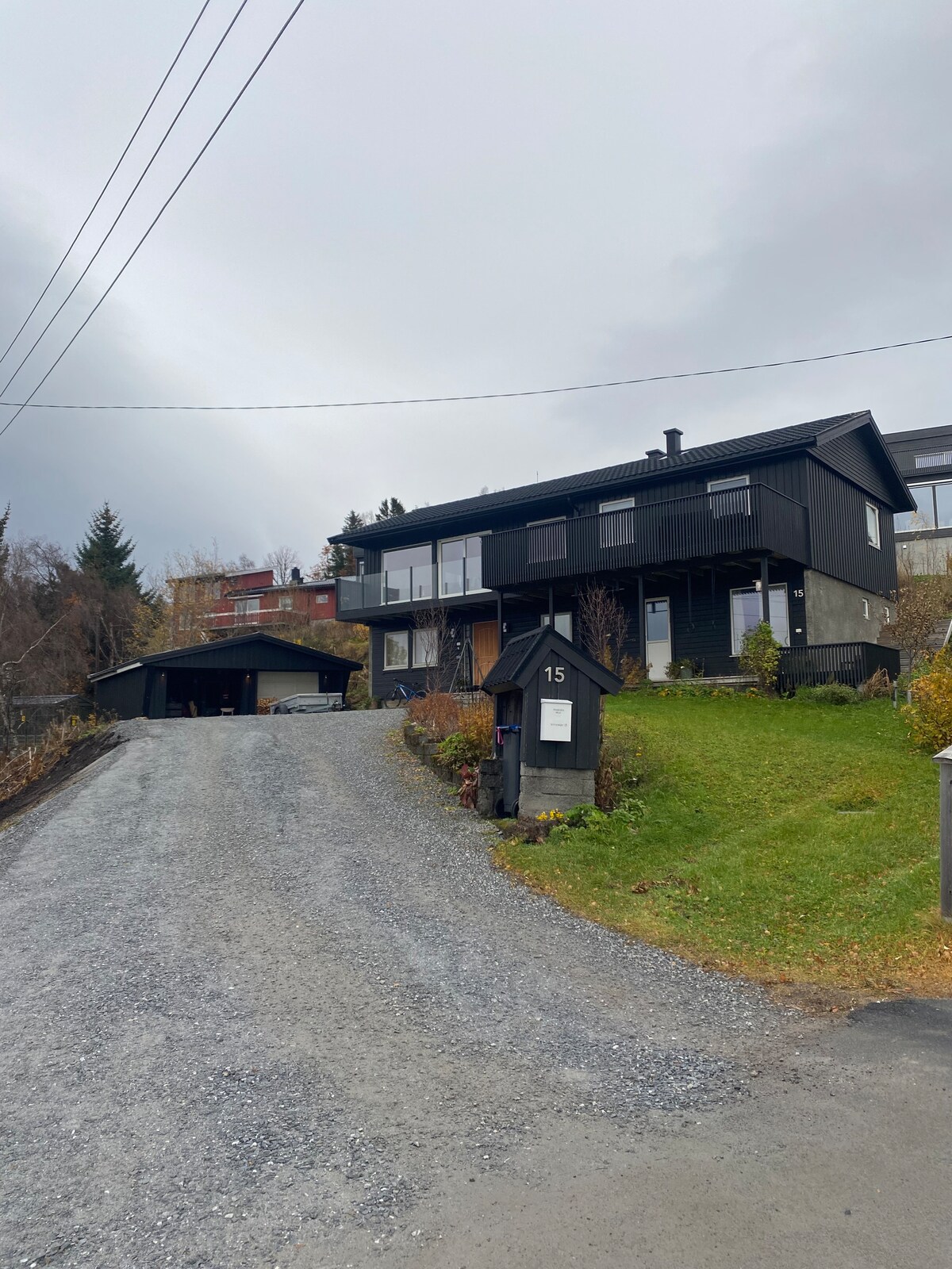 Rom i hus med privat bad. Queen-size og enkeltseng
