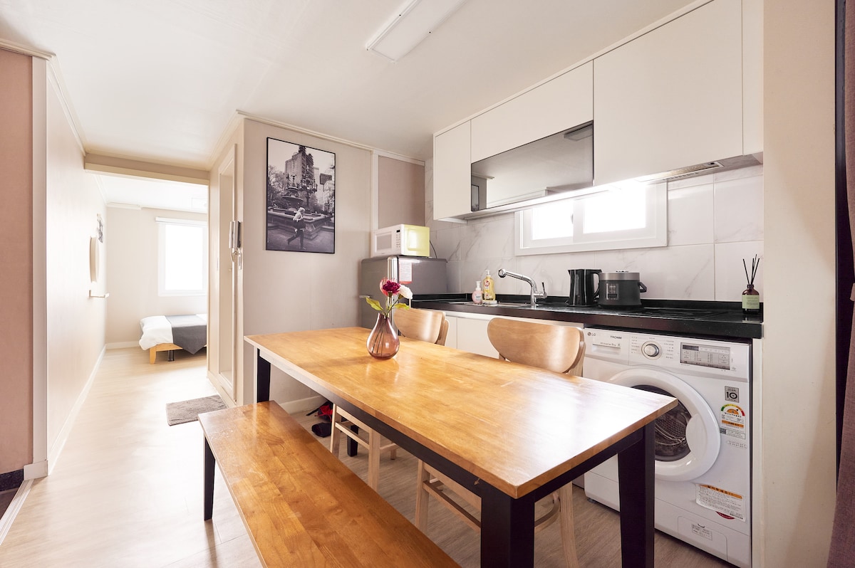 * Ti ricordiamo che questo alloggio è una registrazione di case urbane per stranieri e non può essere prenotata da ospiti nazionali coreani. (Sono disponibili i valori all'estero) soggiorno/cucina + 2 camere + balcone Bella, confortevole e completamente arredata casa con due camere da letto. La casa si trova vicino alla stazione della metropolitana Myeongdong (3 minuti a piedi), il che la rende perfetta per esplorare la città. A pochi passi dalla stazione della funivia del Namsan, dal mercato di Myeongdong, dai negozi duty free e da tantissimi ristoranti.