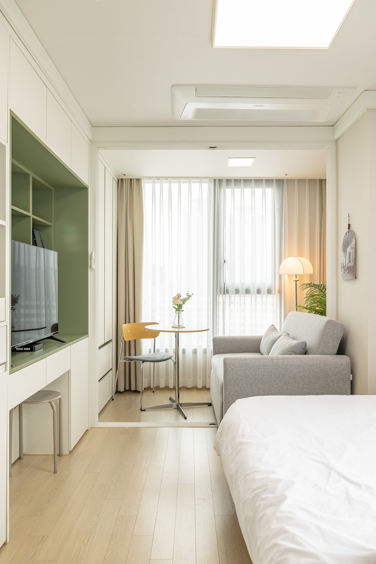 WECO STAY Chungmuro si trova in un quartiere con le atmosfere trendy e retrò di Euljiro. Lo spazio unisce un design elegante e accogliente, offrendo calma e carattere. È anche un'ottima zona da esplorare a piedi, con affascinanti vicoli segnati dal tempo. - Vicino ai luoghi più famosi di Seul come Myeongdong, Euljiro, Namsan e Dongdaemun - 3 minuti a piedi dalla stazione di Chungmuro, uscita 7 (linee 3 e 4) - Dall'aeroporto, prendi l'autobus 6001 fino alla stazione di Chungmuro, uscita 2 (6 minuti a piedi)