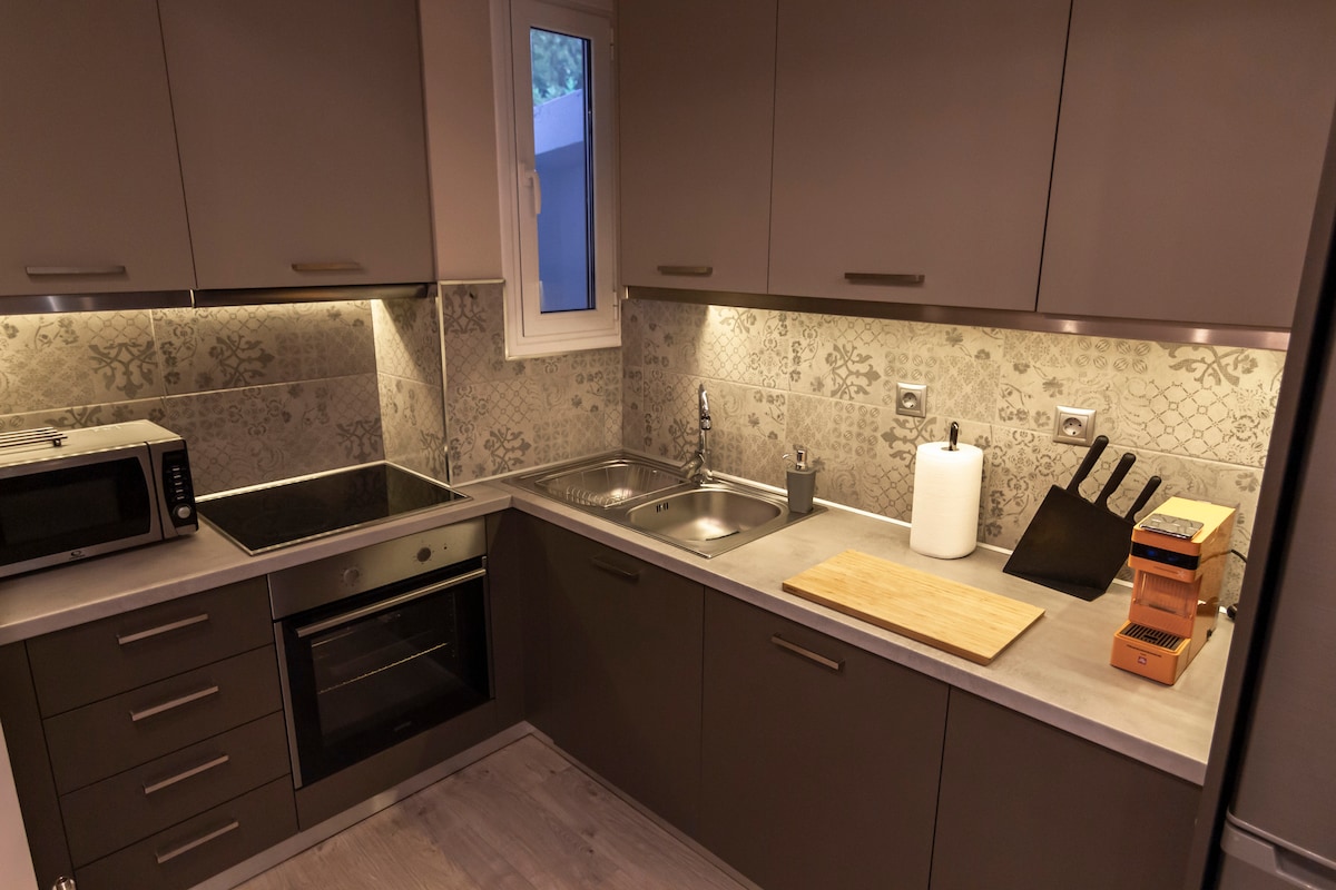 Entra in una casa dove il design industrial-chic dei tenui toni grigi e degli infissi in legno è completato da brillanti tocchi di colore. Prova a cucinare con cibi locali in cucina e immergiti nel comodo divano dopo una giornata di visite turistiche. Numero di licenza/registrazione: 3089588 All'arrivo, da aprile a ottobre, è richiesto il pagamento della tassa di resilienza climatica, in conformità con la legislazione (legge 5073/2023, FEK:B7535/31.12.2023), di 8 € a notte Ti forniremo una ricevuta.
