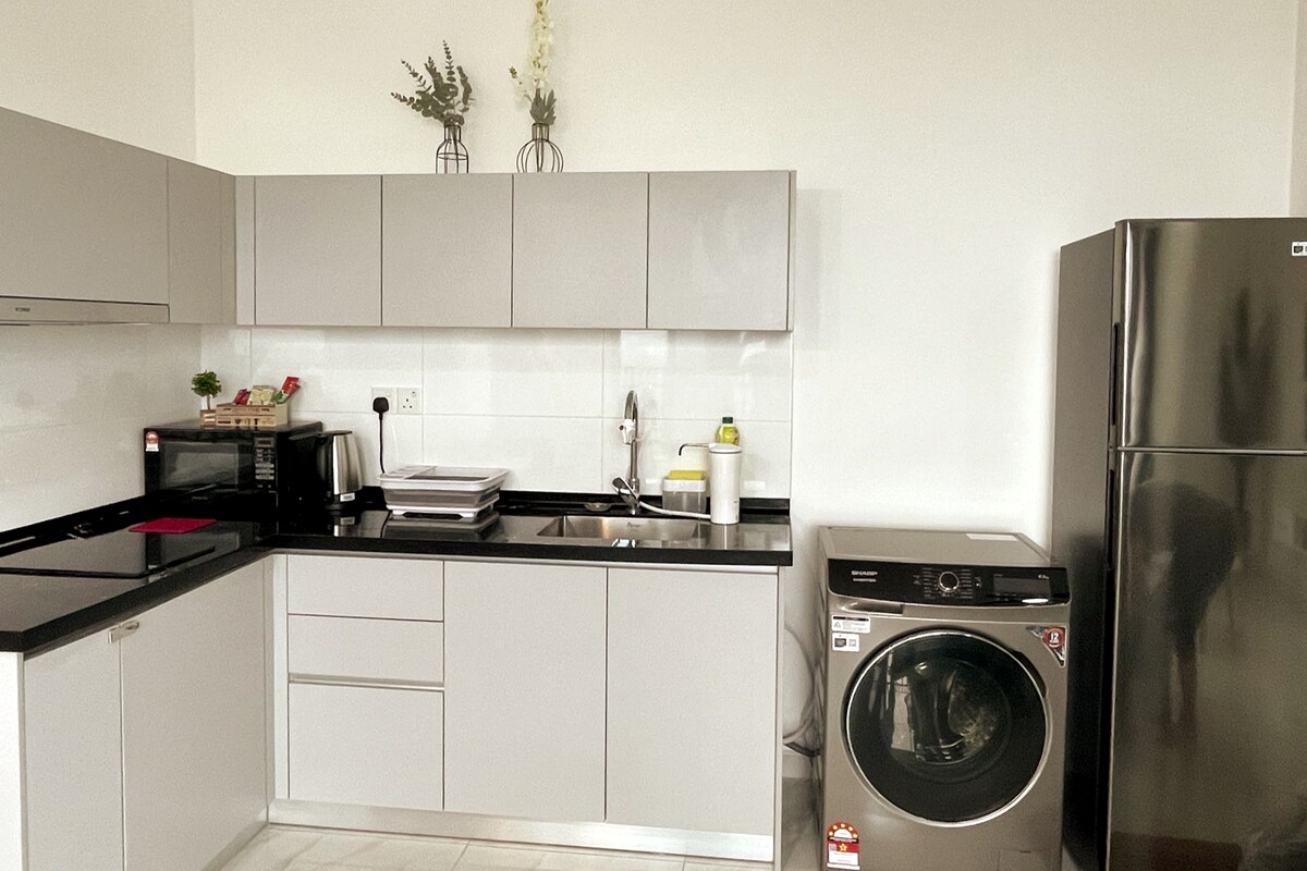 Accogliente, confortevole e spazioso appartamento con 1 camera da letto in un quartiere tranquillo di Putrajaya, a pochi passi dal lussureggiante parco di Saujana Hijau. Una cucina completa, lavatrice, asciugatrice, Internet ad alta velocità, TV a banda larga (Astro), depuratore d'acqua e una serratura intelligente sono a tua disposizione per garantire un soggiorno piacevole. A 5 minuti di auto da Putrajaya Sentral, da cui ci vorrà poco meno di un'ora per raggiungere il cuore di Kuala Lumpur tramite la MRT o 20 minuti per KLIA tramite il KLIA Transit.