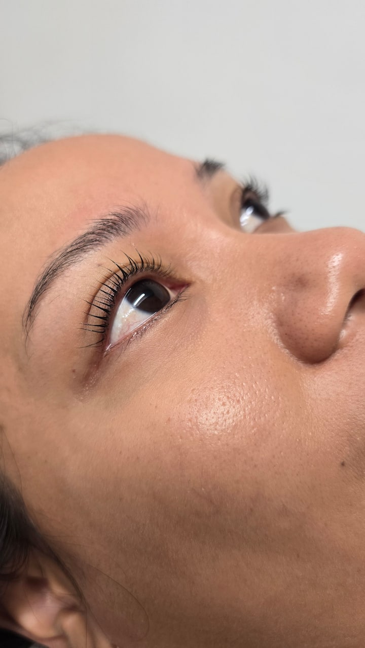Lifting delle ciglia con tinta e trattamento alla cheratina.