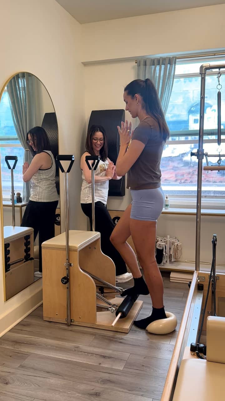 Migliora la tua pratica di pilates con un circuito dinamico in coppia! Un partner lavora sulla sedia mentre l'altro è sul reformer, alternandosi per la massima varietà. Partecipa a una sessione motivazionale e personalizzata incentrata sullo sviluppo di forza, equilibrio e flessibilità. Raggiungi i tuoi obiettivi in un ambiente accogliente e sereno, divertendoti un mondo! Lezioni di Duet Reformer disponibili su richiesta.