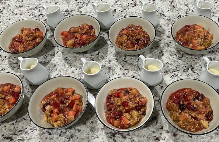 Lavorerò con te per creare un menu di tre portate che includa 2 antipasti o 1 antipasto a persona (come un'insalata o una zuppa), un piatto principale con un contorno di verdure e amido e un dessert. Il prezzo può variare a seconda del menu selezionato.
