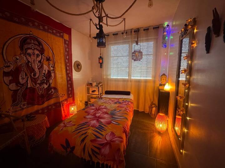 Justine, esperta di massaggi da 10 anni. A La Pergola a Montévrain, vicino a Val d'Europe, goditi massaggi su misura, trattamenti per il viso e depilazioni in un ambiente rilassante. Su appuntamento.