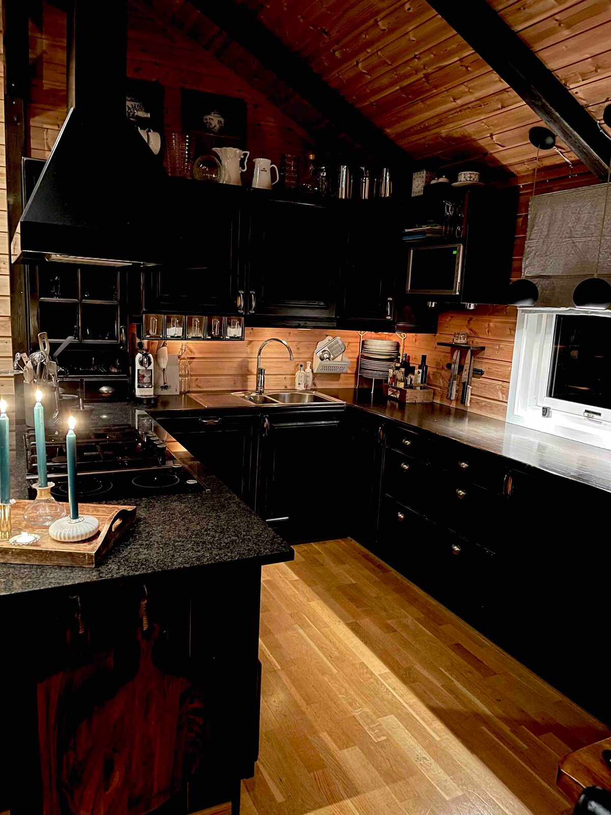 Vi ønsker at alle skal få oppleve naturen så tett på som mulig. Derfor har vi bygget tre små hytter/ hus, med store glassflater overalt, slik at man kan sitte inne og nyte fjellene, horisonten, sjøen , solnedgangene og midnattsolen. Nå er det ikke alltid det sol på øya, så vi har en deilig sofa, som kan bli daybed også, til stunder hvor man vil sitte inne under pleddet, se på regnet og vinden, men likevel får en flott opplevelse av den skiftende naturen.