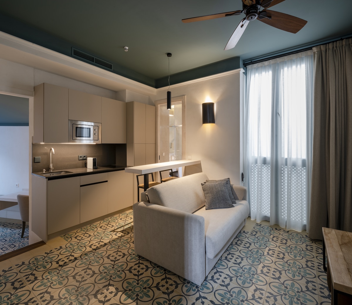 [MYLU SUITES di PUERTA CATEDRAL] Appartamento con una camera da letto ideale per le famiglie con una capienza massima di 2 adulti + 1 bambino fino a 18 anni. Bagno privato aperto sulla camera da letto. Situato nel nostro edificio MYLU SUITES by PUERTA CATEDRAL, un ambiente privilegiato nel cuore di Siviglia. A pochi metri dalla Cattedrale e dal Real Alcázar, i due monumenti più visitati della città. Terrazza in comune con piscina nell'edificio.
