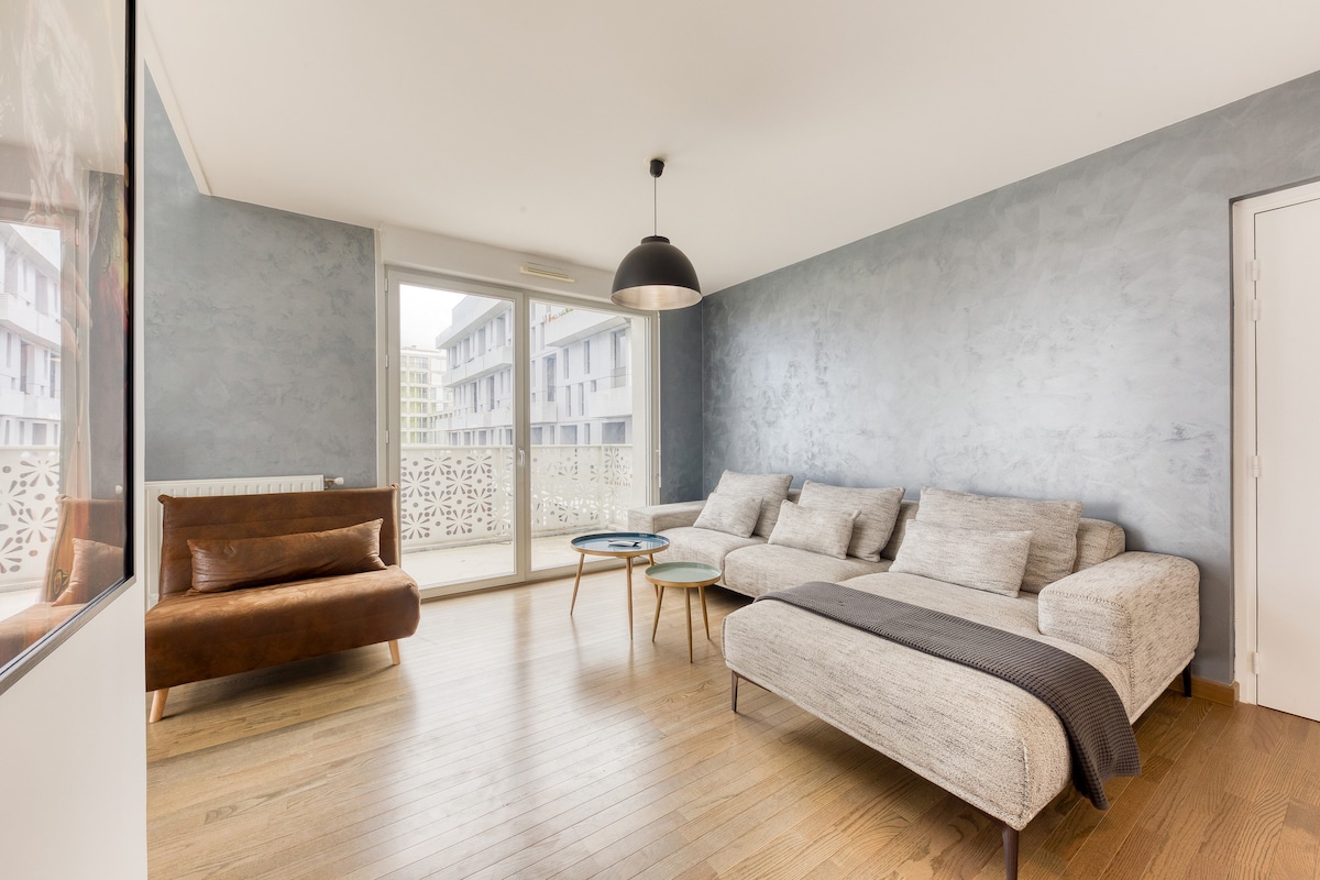Appartamento F4 con terrazza 25mq al 5° piano con ascensore. Lo apprezzerete per la sua atmosfera, la vista, la luminosità, ma anche la cucina attrezzata, 3 camere da letto, un bagno e servizi igienici individuali. È perfetto per i fine settimana con 3 notti minimo, soggiorni lunghi fino a 21 giorni per studenti o per fiere: dal Parco delle Esposizioni di Villepinte, Le Bourget e dallo Stade de France anche in 25 minuti RER B nel cuore di Parigi -Châtelet - Les Halles. Splendido soggiorno