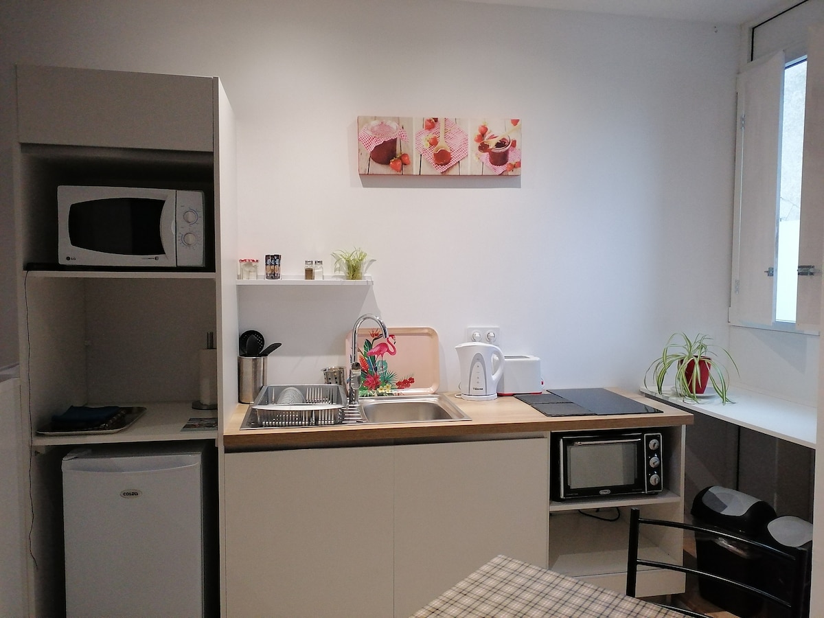 L'alloggio è di 35mq, nuovo di zecca all'interno di un edificio industriale costruito negli anni '50 a 12 km dal Puy du Fou a La Flocellière. Il monolocale è nella nostra casa con accesso indipendente e corridoio in comune. Questo è un posto tranquillo e silenzioso nel bosco della Vandea. Avrete tutti i comfort necessari per cucinare con la comodità di una TV, wifi e zanzariera alla finestra.