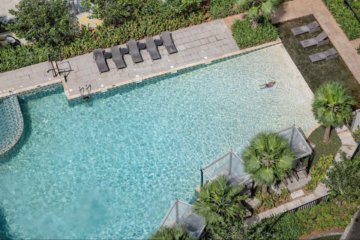 Vista panoramica sulla piscina | Grande monolocale elegante | Parcheggio!