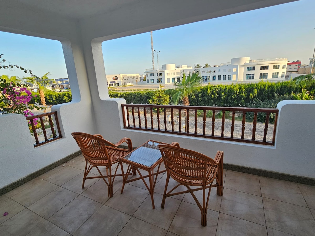 Siete invitati a soggiornare in un appartamento vicino alla spiaggia e a una bellissima barriera corallina lungo il Mar Rosso. L'aeroporto dista circa 15 minuti di auto. Soho Square con caffè, negozi e aree pedonali è raggiungibile a piedi L'appartamento si trova all'interno di una villa privata con piscina e area verde esterna, un bel posto dove rilassarsi dopo una giornata al mare. Si prega di notare che i lavori di costruzione possono avvenire nella zona, quindi è possibile che ci sia rumore durante il giorno. Le mattine e le serate sono tranquille e silenziose