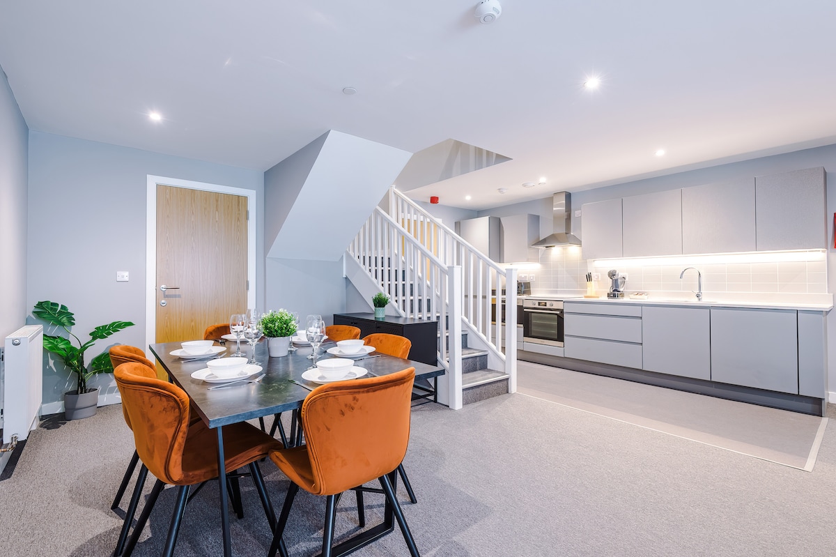 Benvenuti nel nostro moderno ed elegante appartamento per 7 persone a Fargate, proprio nel vivace centro di Sheffield. È perfettamente posizionato nel cuore del centro di Sheffield. Perfetto per famiglie e gruppi, questo spazio contemporaneo offre comfort, comodità e tutto il necessario per un soggiorno rilassante. Con il Crucible Theatre, il Winter Garden, i Peace Gardens, i migliori ristoranti, bar, negozi e mezzi di trasporto a pochi passi di distanza, è la base ideale per una visita pulita, spaziosa e memorabile visita a Sheffield.