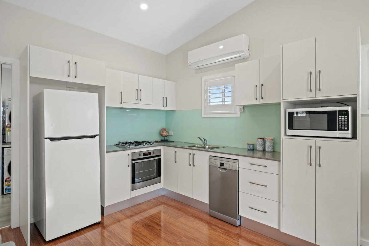 Situata tra la spiaggia e il lago, alla fine di una tranquilla strada senza uscita, con una pittoresca vista sulla laguna! E a pochi metri dall'accesso al famoso nuovo percorso di Fernleigh! Questa accogliente casa con una camera da letto completamente attrezzata è nuovissima e pulitissima! Completamente attrezzata con tutta la biancheria, asciugamani, saponi, shampoo, carta igienica, macchina da caffè Nespresso + cialde di caffè, bollitore, caffè solubile, bustine di tè, zucchero, tostapane, friggitrice ad aria e tutti gli elementi essenziali della cucina.