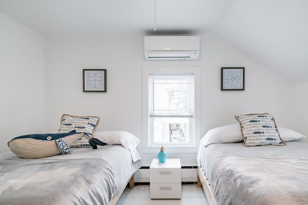 La casa si trova su un terreno di 35 ettari con un sacco di zona pranzo all'aperto e un'enorme zona erbosa con un braciere e un'amaca. Ci sono 2 piani. Il primo piano ha una pianta aperta con cucina comunicante, sala da pranzo e soggiorno. La cucina è ben attrezzata con lavastoviglie, piano cottura/forno elettrico, frigorifero e bar. Al 1 ° piano c'è anche una camera da letto con 2 letti matrimoniali. Il 2 ° piano ha 3 camere e una zona loft/den. Le tre camere da letto di questo piano hanno rispettivamente 1 letto queen-size +futon, 2 letti matrimoniali e 2 letti singoli (che possono essere uniti per formare un re su richiesta). Tutte le camere sono dotate di aria condizionata. Ci sono 2 bagni completi (1 su ogni piano) e una lavatrice/asciugatrice. Gli ospiti hanno la possibilità di accedere all'intera casa e all'area del cortile. Rispettiamo la tua privacy, ma siamo a tua disposizione in caso di domande o se hai bisogno di qualcosa durante il tuo soggiorno. Greenport è stata votata una delle città più belle d'America dalla rivista Forbes. Ha una cultura vivace e rilassante, che offre accesso a spiagge, degustazioni di vini e ristoranti meravigliosi. Nelle vicinanze si trovano le fermate di Shelter Island Ferry e Hampton Jitney. Siamo a pochi isolati dalla fermata Hampton Jitney, dalla stazione LIRR e dal Shelter Island Ferry. Non è necessaria alcuna auto: puoi camminare ovunque tu abbia bisogno!