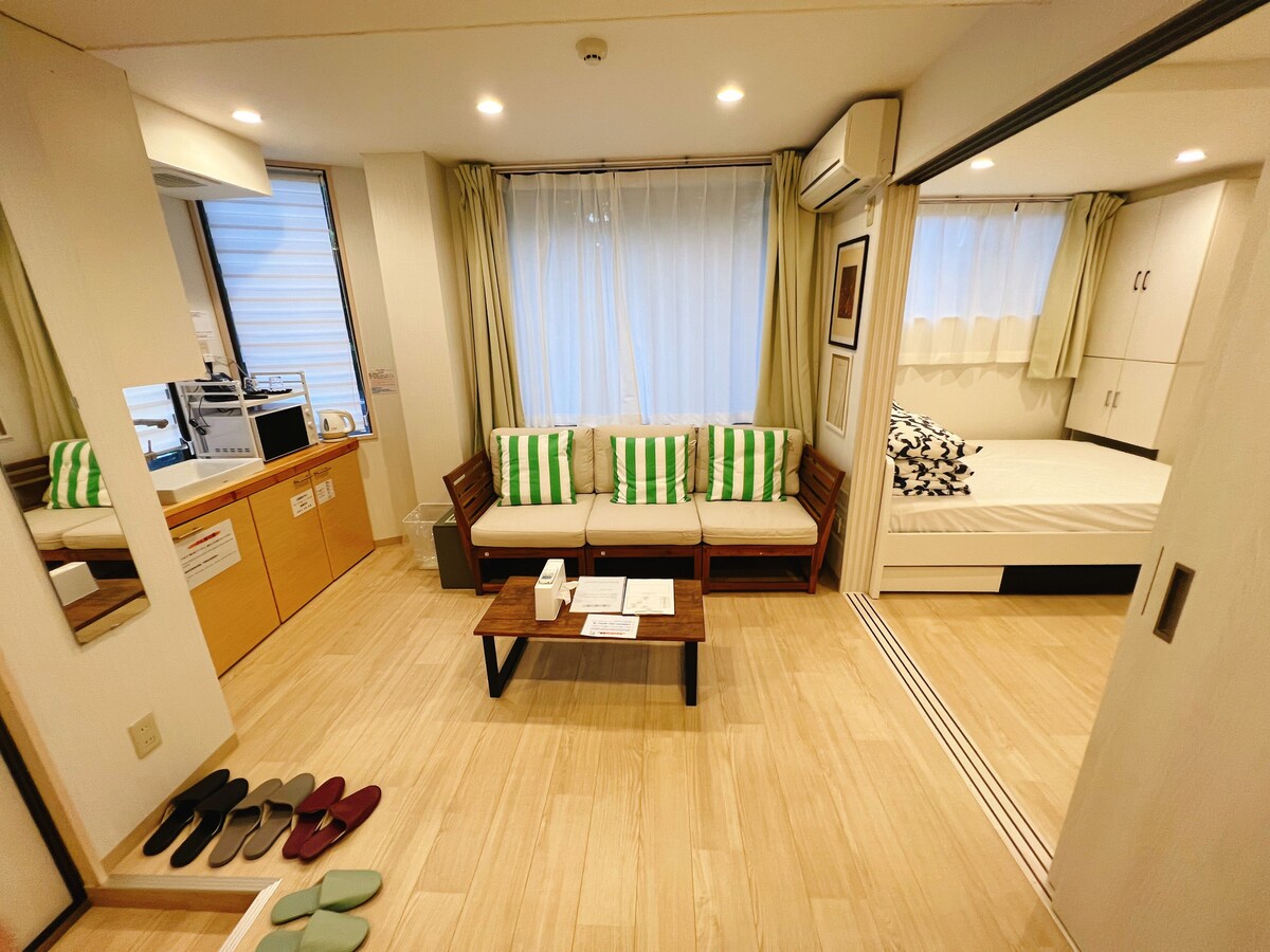 Saii hotel 402 si trova nel quartiere dello shopping di Tokyo Shinjuku, ampio e luminoso, bagno privato e bagno privato, lavabo separato, camera completamente attrezzata, wi-fi, divano, TV, aria condizionata con regolazione calda e fredda, frigorifero, forno a microonde, bollitore e utensili da pranzo come pentole e ciotole per cucinare.Prodotti da bagno (shampoo Pola, bagnoschiuma, balsamo per capelli) Spazzolino, telo da bagno e asciugacapelli.Che si tratti di una famiglia, di una ragazza, di un amico o di una coppia, questo è il posto perfetto per immergersi nella meravigliosa atmosfera di Tokyo. La zona tranquilla della sistemazione in famiglia offre uno spazio lontano dal caos.Il trasporto è molto comodo, a 30 secondi a piedi da una farmacia e da un minimarket aperto 24 ore su 24, un grande supermercato a 1 minuto a piedi e una varietà di deliziosi negozi di alimentari vicino alla stazione, pronti a soddisfare le tue esigenze quotidiane, aggiungendo più comodità al tuo viaggio.Che tu sia in vacanza di piacere o di lavoro, faremo del nostro meglio per rendere il tuo soggiorno in famiglia un'esperienza piacevole. Inoltre, ci sono 8 stanze private nell'intero edificio dell'alloggio, adatte per la costruzione di gruppi aziendali o riunioni di famiglia, l'intero edificio può essere affittato. • Varie opzioni: una stanza può essere prenotata separatamente o l'intera casa può essere affittata per esigenze diverse. ⚠️Questo alloggio non fornisce condimenti o detersivo per il bucato, per cui ti preghiamo di portare il tuo se necessario. ⚠️Questo è un edificio di 5 piani e questa proprietà non ha ascensore al 4° piano.🛗(Non c'è l'ascensore, quindi il prezzo appena rinnovato è economico, la dimensione della casa è il doppio delle case circostanti con ascensori allo stesso prezzo e le prestazioni di costo sono molto alte.