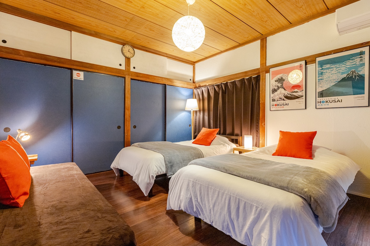Questa è una CASA PRIVATA di 63 m² con 2 camere da letto, soggiorno e cucina, dove puoi soggiornare in una casa tradizionale giapponese di 70 anni. Può ospitare fino a 5 persone. 2 biciclette a noleggio gratuite. Comodo per visitare Kamakura, a soli 5 minuti a piedi dalla stazione di Koshigoe. 2 minuti a piedi dalla spiaggia. Anche Enoshima e il quartiere dello shopping sono raggiungibili a piedi, il che rende il soggiorno confortevole. Il quartiere dello shopping di Koshigoe è pieno di caffetterie, ristoranti, supermercati, minimarket e altro ancora.