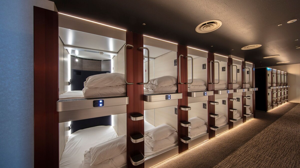 Camera capsula solo per donne * Le prenotazioni non sono disponibili per gli uomini. A circa 1 minuto a piedi dalla stazione JR di Onomichi.È un capsule hotel con un accesso eccellente. Offriamo uno spazio pulito e confortevole, perfetto per chi viaggia da solo e per i ciclisti.Ci sono piani separati per uomini e donne, quindi puoi stare tranquilla anche se sei una donna che viaggia da sola. L'edificio è completamente attrezzato con servizi come bar, bevande gratuite, Wi-Fi gratuito e parcheggio interno per biciclette. Consigliato per Per chi desidera contenere i costi di alloggio, ma anche dare la priorità al comfort Voglio godermi la visita della città e andare in bicicletta, quindi uso la locanda solo per dormire Chi vuole usare Onomichi come base per viaggiare lungo la Shimanami Kaido Ciò che ti piacerà Nella capsula è presente una presa di corrente.Puoi anche caricare il tuo smartphone in tutta tranquillità Piani separati per uomini e donne, armadietti privati e sicurezza◎ Wi-Fi gratuito in tutto l'hotel, disponibile anche nella capsula Bevande gratuite nella lounge condivisa La doccia, il bagno e la toilette sono completamente separati e puliti A disposizione anche un set di cortesia e un asciugacapelli ・ C'è un parcheggio interno per biciclette.Anche i viaggiatori in bicicletta possono stare tranquilli È disponibile una lavanderia a gettoni (a pagamento), comoda per i soggiorni a lungo termine