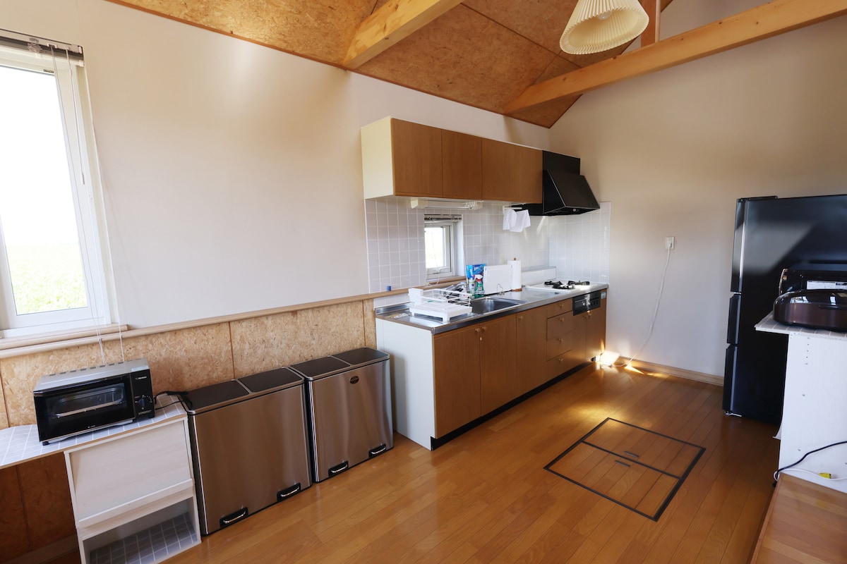 A circa un'ora dalla città di Sapporo e dall'aeroporto di New Chitose. È una casa indipendente situata in una zona tranquilla tra le montagne della città di Iwamizawa. La casa è stata ristrutturata, con un ampio spazio aperto. L'aria è pulita, la luce del sole è piacevole e il cielo stellato è molto bello nelle giornate limpide. Speriamo che possiate godervi il suono della natura e respirare profondamente mentre vi immergete nei cambiamenti delle stagioni. ◯Spazio L'intero edificio a due piani è a vostra disposizione. · Le 2 camere da letto da 6 tatami sono collegate. - 1 letto matrimoniale (per 2 persone) - 3 set di futon (3 letti singoli) Cucina Il lavandino ha 3 livelli, quindi puoi cucinare ampiamente. Fornelli a gas a due fuochi/pentole/set di utensili da cucina/stoviglie/forno a microonde/forno tostapane/frigorifero/macchina per il caffè/bollitore elettrico/cuociriso Soggiorno C'è un ampio soggiorno al secondo piano dove ci si può rilassare. Libri, altoparlanti, ecc. Si prega di divertirsi liberamente. · Bagno, doccia C'è un bagno con doccia. Asciugamani/shampoo/balsamo/bagnoschiuma/asciugacapelli/lavatrice A circa 3 km di distanza si trova un centro termale (Maple Lodge).