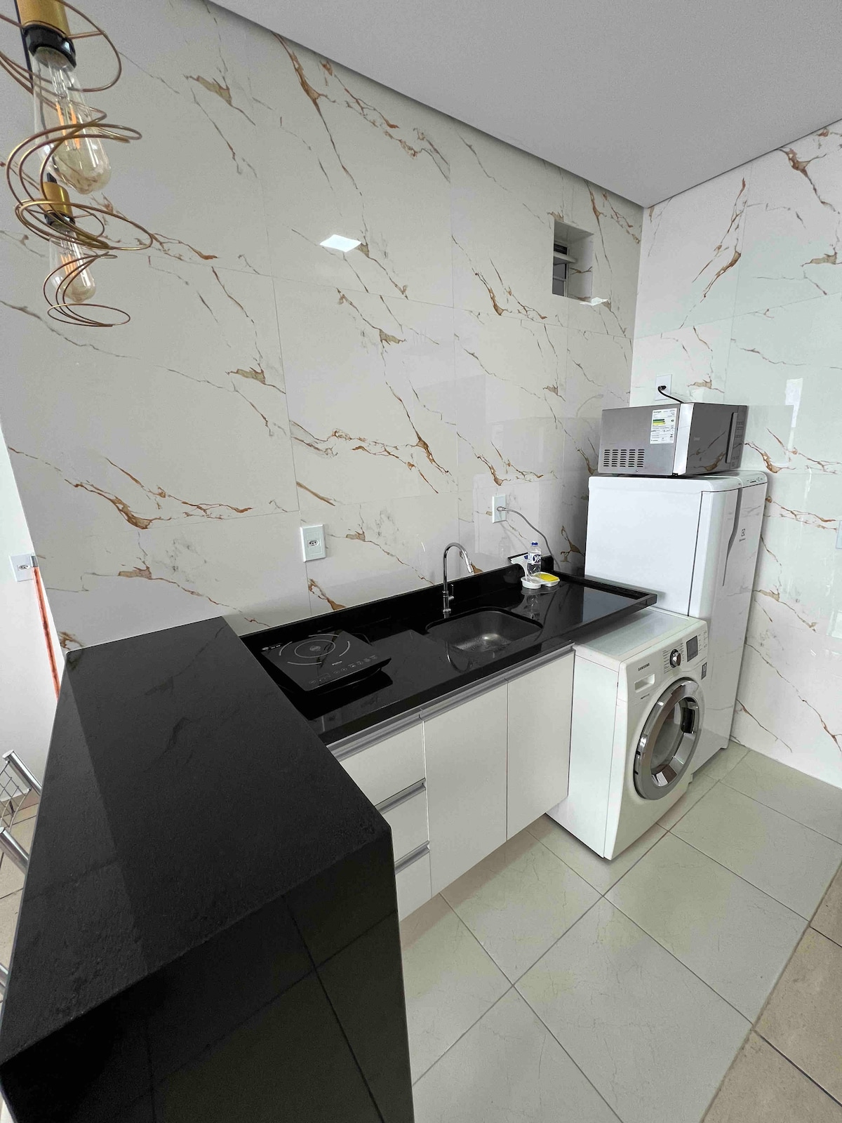 Kitnet confortevole e riservata. È separata dalla casa principale, consentendo l'ingresso e l'uscita a piacimento. Dispone di una camera con letto matrimoniale, un bagno e una cucina/soggiorno. Microonde, piano cottura senza forno, frigobar e macchina per il caffè. Forniamo lenzuola, cuscini, asciugamani e carta igienica. Nessuna doccia elettrica al momento e non sono ammessi cani o gatti