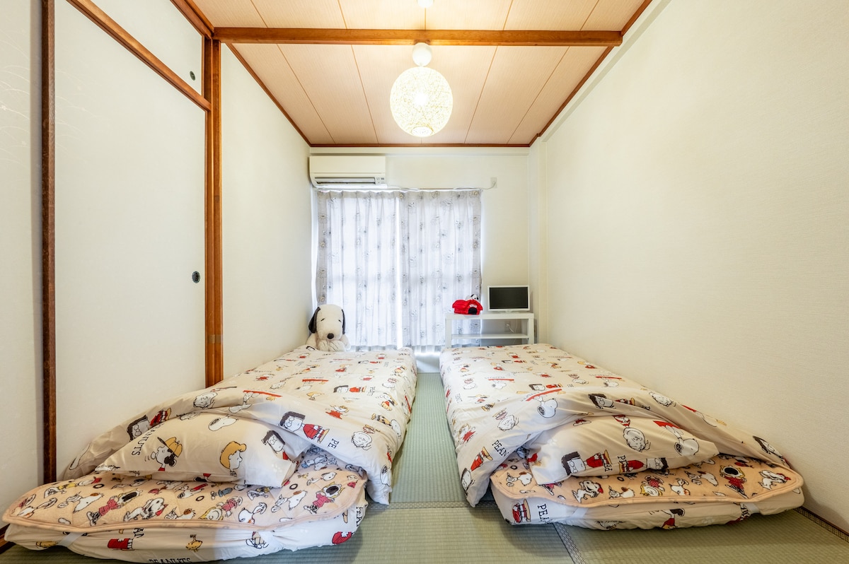 The inn is a 5-minute walk from Nankai Tenkaichaya Station, and is located on the second floor of a fully renovated house. There are direct trains to Namba, Shinsekai, making it a convenient place to go sightseeing anywhere in Osaka. The living room and dining room are comfortable and will be a place where you can spend a pleasant and relaxing time during your stay! There is one king bed, three single beds, three futon sets, and one sofa bed, which can accommodate up to 10 people.