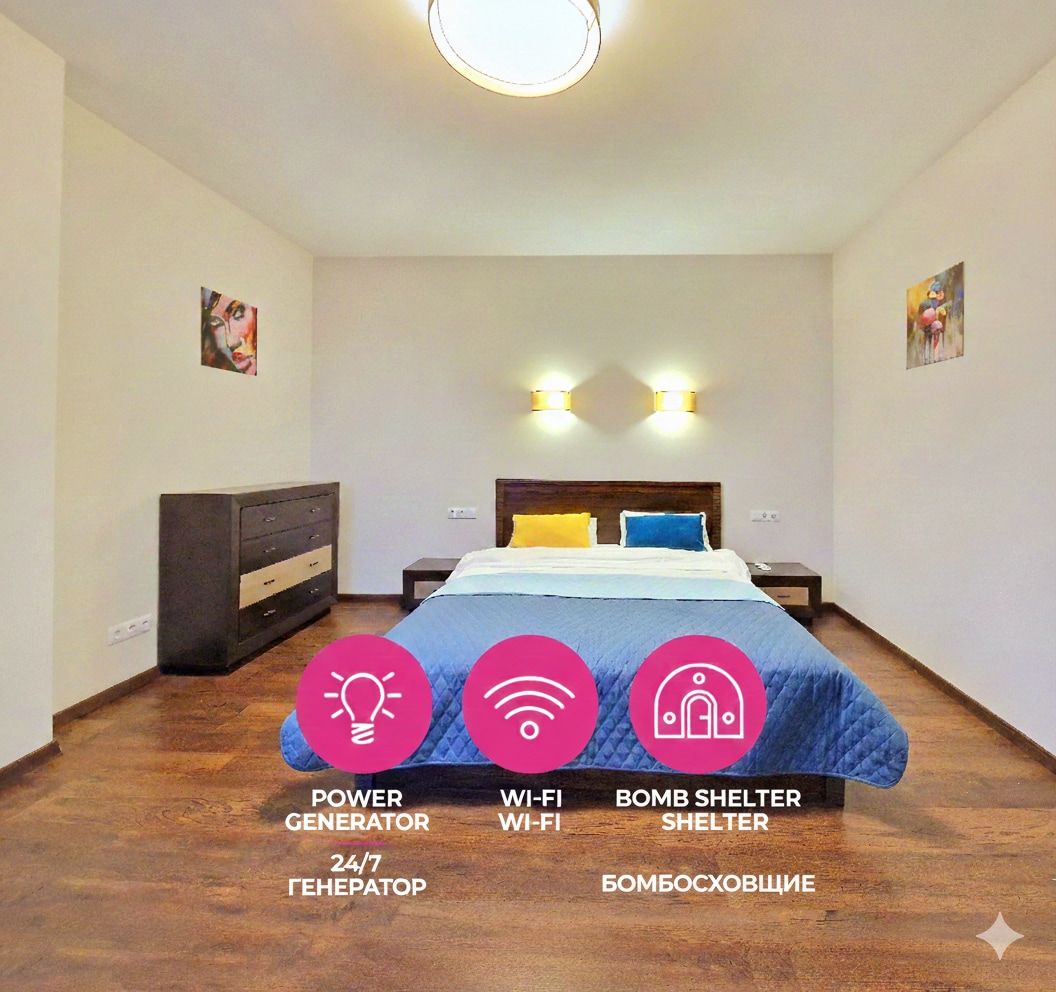 ℹ️ Nessun taglio di corrente per oggi il rifugio ufficiale️ più vicino si trova nel parcheggio sotterraneo della casa, facilmente raggiungibile con ascensore. L'appartamento (90 mq) può ospitare fino a 4 viaggiatori e dispone di 2 camere da letto separate (1 letto matrimoniale🛏️/ 1 divano letto🛋️), 2 bagni principali completi (doccia🚿/vasca🛁), 1 bagno per gli ospiti, 1 cucina completa + zona pranzo (soggiorno). ▫️14° piano (edificio di 16 piani); ▫️2 ascensori; Sicurezza in casa ▫️24 ore su 24; ▫️Self check-in con personale di sicurezza/concierge e smart lock.