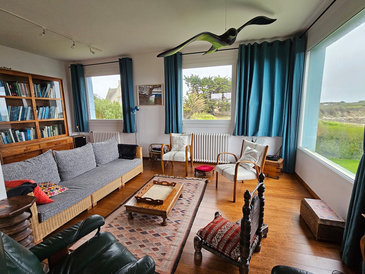 🌊 Duplex con vista sul mare e giardino - Santec, Plage du Théven Splendido appartamento duplex al 3° piano (senza ascensore) di un condominio storico, di fronte a Plage du Théven a Santec. L'appartamento vanta una vista panoramica sul mare, un accesso privato diretto alla spiaggia tramite un cancello sicuro e un giardino privato di 100 m² con tavolo di fronte all'oceano.