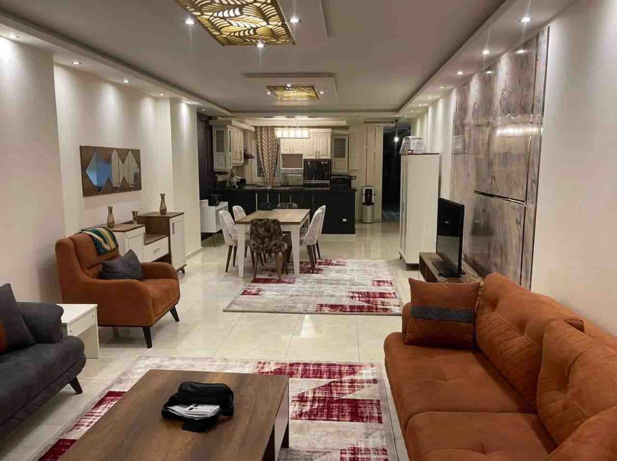 Questo elegante alloggio è perfetto per viaggi di gruppo. -Ultra Super Lux Fully Furnished apartment '' Area 130 m'' *** Si prega di notare che ospitiamo solo famiglie - '' ascensore disponibile '' all'8° piano Pronto per il trasloco Posizione privilegiata - Tutte le camere sono dotate di aria condizionata - Favolosa vista mare frontale - 2 camere da letto + ampi salotti + elettrodomestici da cucina integrati + bagno + balcone con vista mare + lavatrice + frigorifero + forno + TV + forno a microonde + fornelli + acqua calda - Nuove finiture, nuovi mobili e tutti gli elettrodomestici - WIFI GRATUITO - Sicurezza