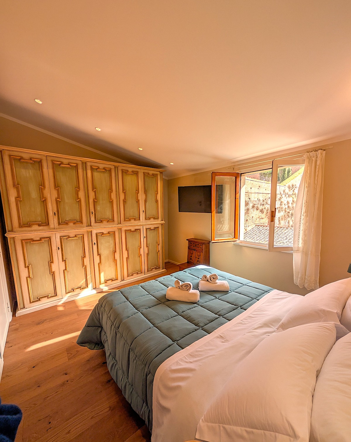 Una piccola e graziosa nicchia all'interno di imponente e bellissimo palazzo storico vicino a Piazza del Campo. Affacciandovi potete scorgere il tramonto sulla grande Chiesa di San Domenico. I punti di forza sono la posizione, la luminosità e il silenzio pur essendo in pieno centro storico, l'attenzione alla funzionalità e alla pulizia. Molte scale, ma basse, ampie e bellissime, infatti sono tutelate come monumento. Per chi vuole immergersi nella magica atmosfera del centro storico medievale🤍
