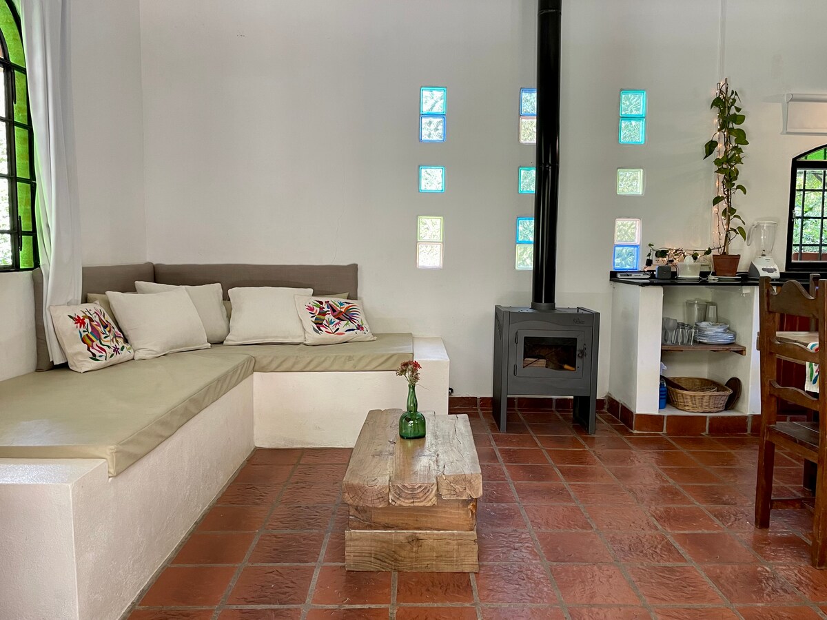 La casa è in un ambiente naturale che vogliamo mantenere. È caldo e confortevole. Si trova in un luogo alto e quindi ha una vista privilegiata, soprattutto dal tramonto. Il luogo perfetto per rilassarsi. Si trova nella proprietà di La Escondida, e mentre ci sono altre 3 case, ognuna è a distanza prudenziale dall'altra, per una maggiore privacy.