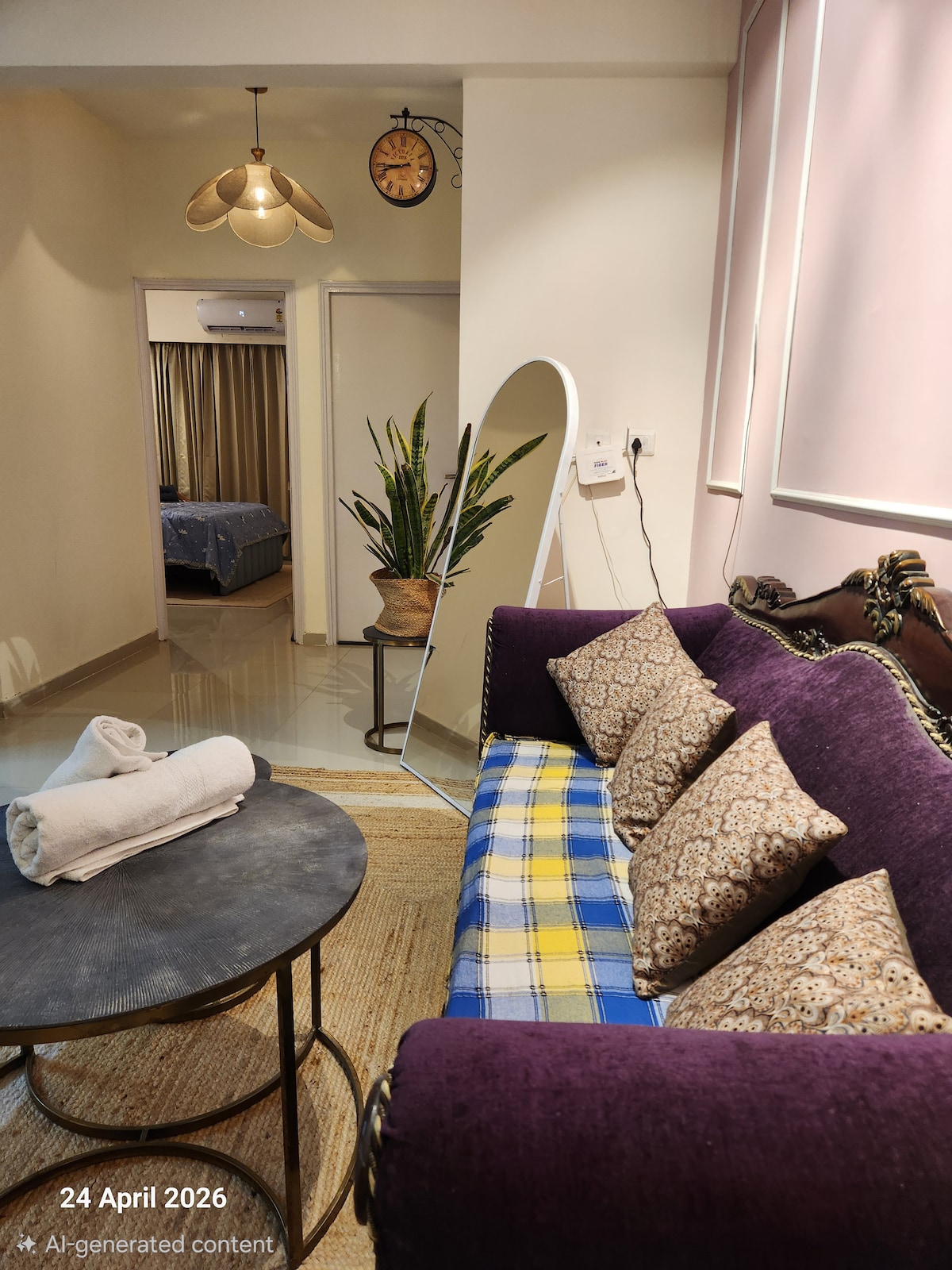 Appartamento di 1 camera da letto a Gurgaon sopra il centro commerciale Sapphire 83 - oltre 240 recensioni, 4,98★. Configurazione ultra pulita, workstation dedicata, WiFi da 200 Mbps con backup UPS e parcheggio coperto gratuito. La nostra posizione strategica offre facile accesso da NH48, Dwarka Expressway, SPR e importanti hub come American Express, TCS, Skyview Corporate Park, DLF Corporate Greens. Inox, ristoranti, palestra e pub sono all'interno del tuo edificio. Costruito per i viaggiatori d'affari che non scendono a compromessi.