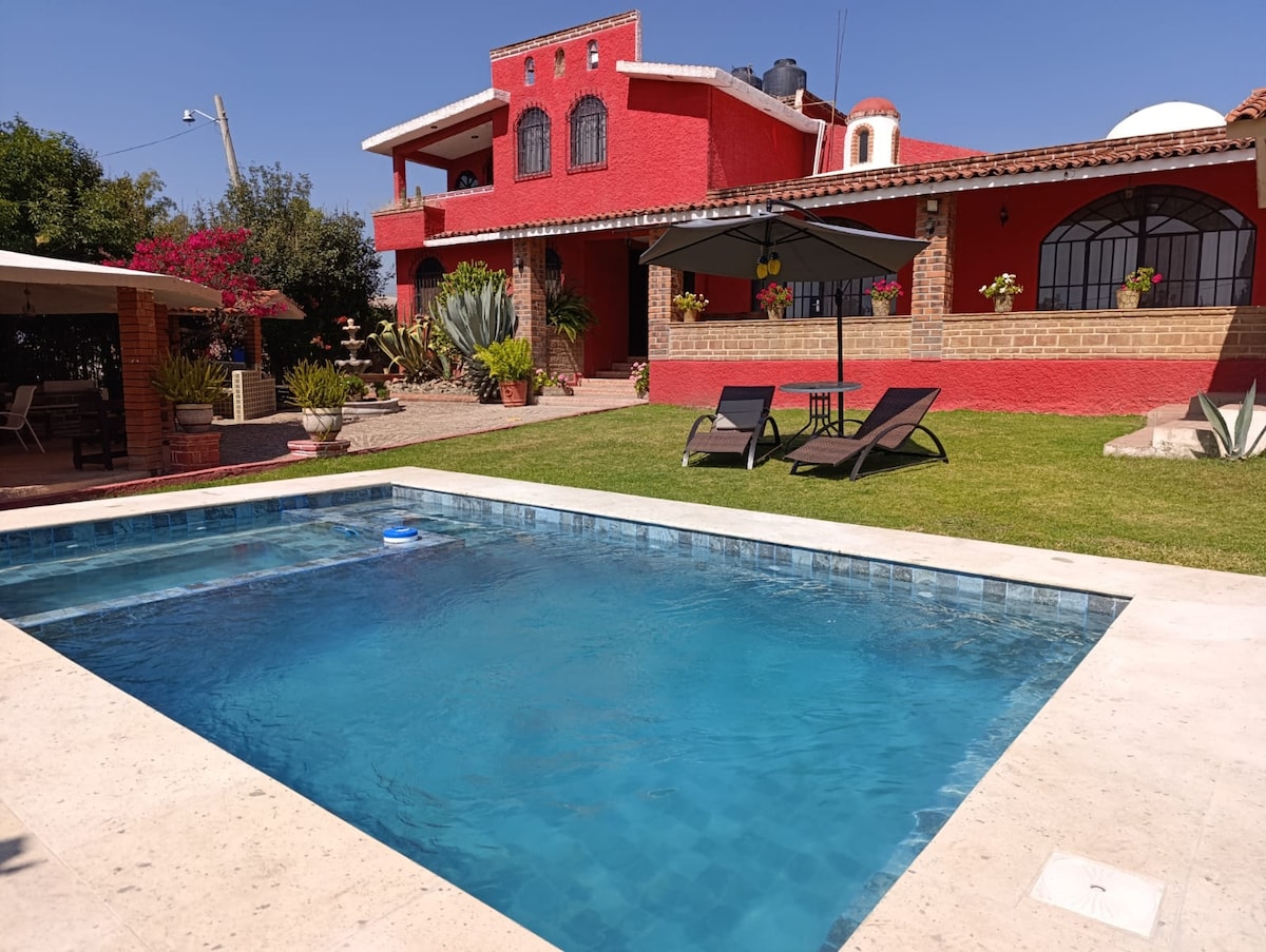 Quinta Chaparrita, casa con PISCINA COMPLETAMENTE PRIVATA RISCALDATA. Goditi la natura con la famiglia o gli amici. Ambiente tranquillo e sicuro, con negozi nelle vicinanze e posizione favolosa! 2 ampie camere da letto + soppalco. Parcheggio per 6 auto o più, cucina attrezzata + soggiorno + COPERTURA WIFI. Splendidi esterni, 1 bagno completo all'interno + 2 bagni di servizio all'esterno. Siamo a 20 minuti da Cristo Rey, dalla capitale di Guanajuato e dalle sue mummie. Gli Outlet di León e il meglio del turismo a Guanajuato!