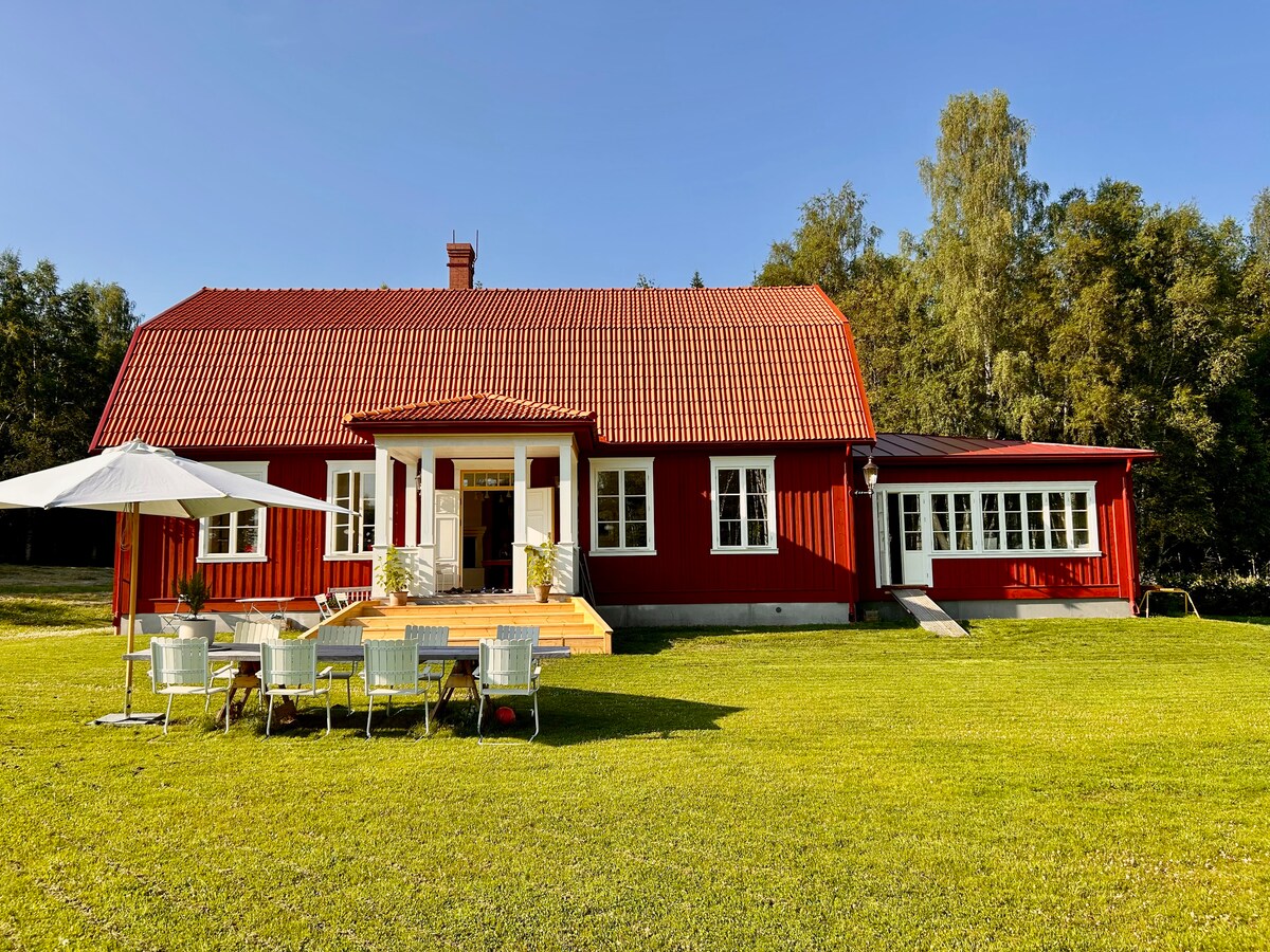 Una fantastica villa e fattoria ristrutturata con un totale di 4 camere da letto. Ampio soggiorno con camino, grande cucina, cantina con 1 camera da letto + doccia/vasca da bagno/WC e patio. La casa si trova a circa 300 metri da un piccolo Coop, a circa 1 km dal centro, a circa 2 km dalla stazione ferroviaria, dal centro commerciale Kupolen, da IKEA, dal parco acquatico Aqua Nova. Sotto la casa c'è un bel sentiero escursionistico vicino al fiume Dalälven. Se vuoi andare in un accogliente caffè, Gammelgården si trova a pochi passi dalla casa.
