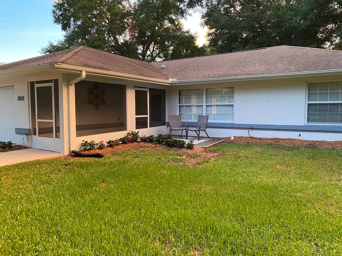 Relax with the whole family in this 3 bedroom, 2 bath updated home near HITS (Ocala’s Beautiful Horse Farms), Disney, Beaches & Springs. Home is 1 block from Publix Grocery Store & Restaurants. Located about an hour from Ormond/Daytona Beach, Disney World & Orlando area. If you like Florida’s nature areas, the home is about half an hour to Juniper Springs, Salt Springs & minutes to Silver Springs. Bring your kayaks/canoes. Gulf fishing and several lakes nearby. Just minutes from Downtown Ocala!