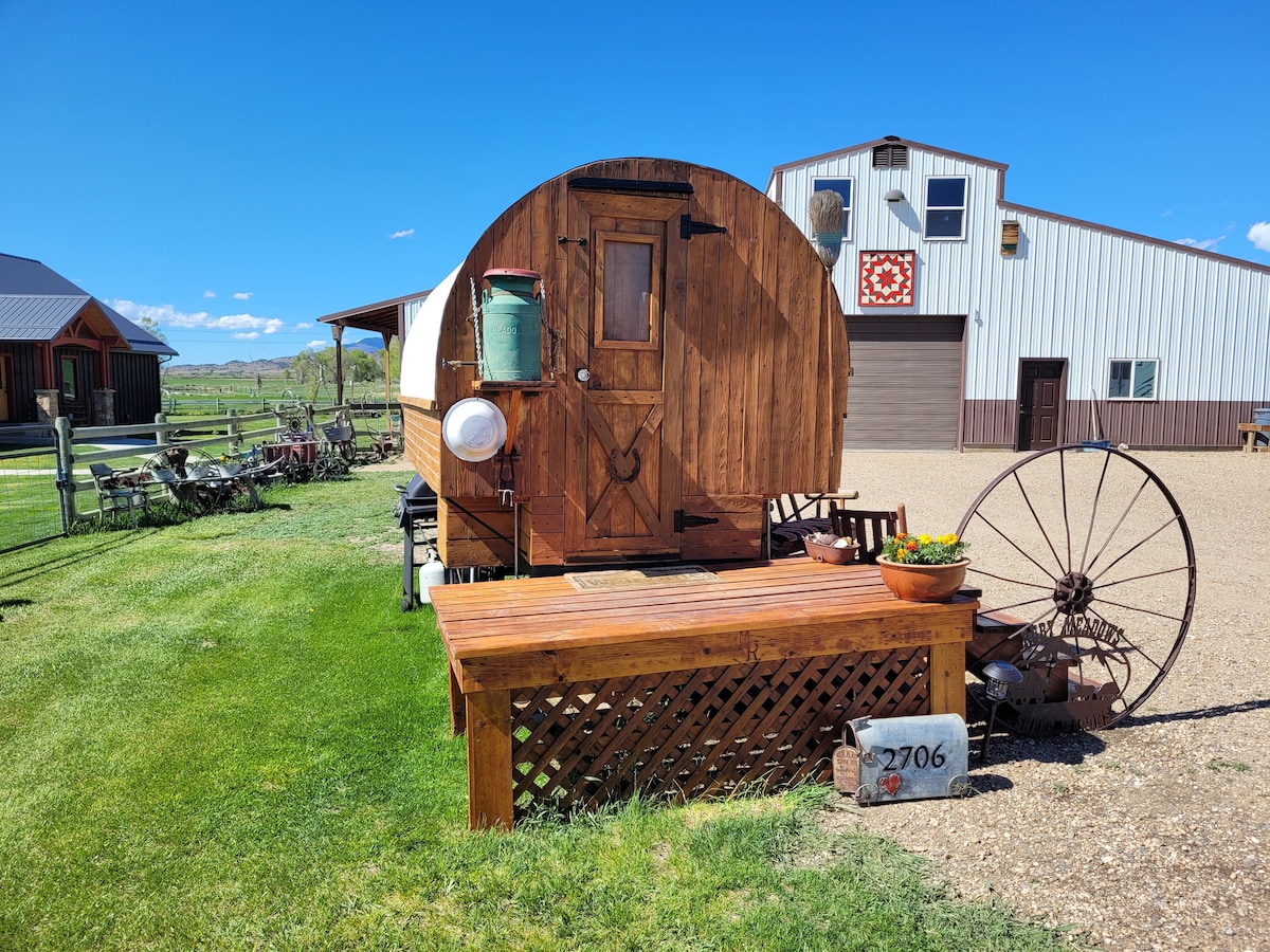 Per il viaggiatore avventuroso, prova una o due notti in un carro per pecore. Casa su ruote per i primi pastori di pecore sulle montagne del Montana, questo carro costruito a mano si trova nella nostra fattoria di 30 acri. Rifinito sotto tela con pino a maschio e femmina, questo spazio molto piccolo offre un'esperienza di alloggio unica. All'interno c'è un bel letto matrimoniale, 2 panche e un tavolo da pranzo estraibile. Goditi la vista sulle montagne dalla panchina esterna, dalla sedia a dondolo e dal braciere. Servizi igienici nel nostro negozio vicino.
