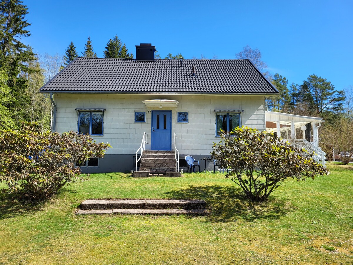 Welcome to a cozy 40 m2 cottage in a small countryside village, close to forests, hills and lakes. If you are looking for a comfortable living in the middle of nature for you and your family, this is a nice choice. The accommodation includes one canoe that can fit 3 adults. Life jackets and paddles also included. Walking distance to the lake and river. Transport of canoe to other lakes can be arranged for a small fee.