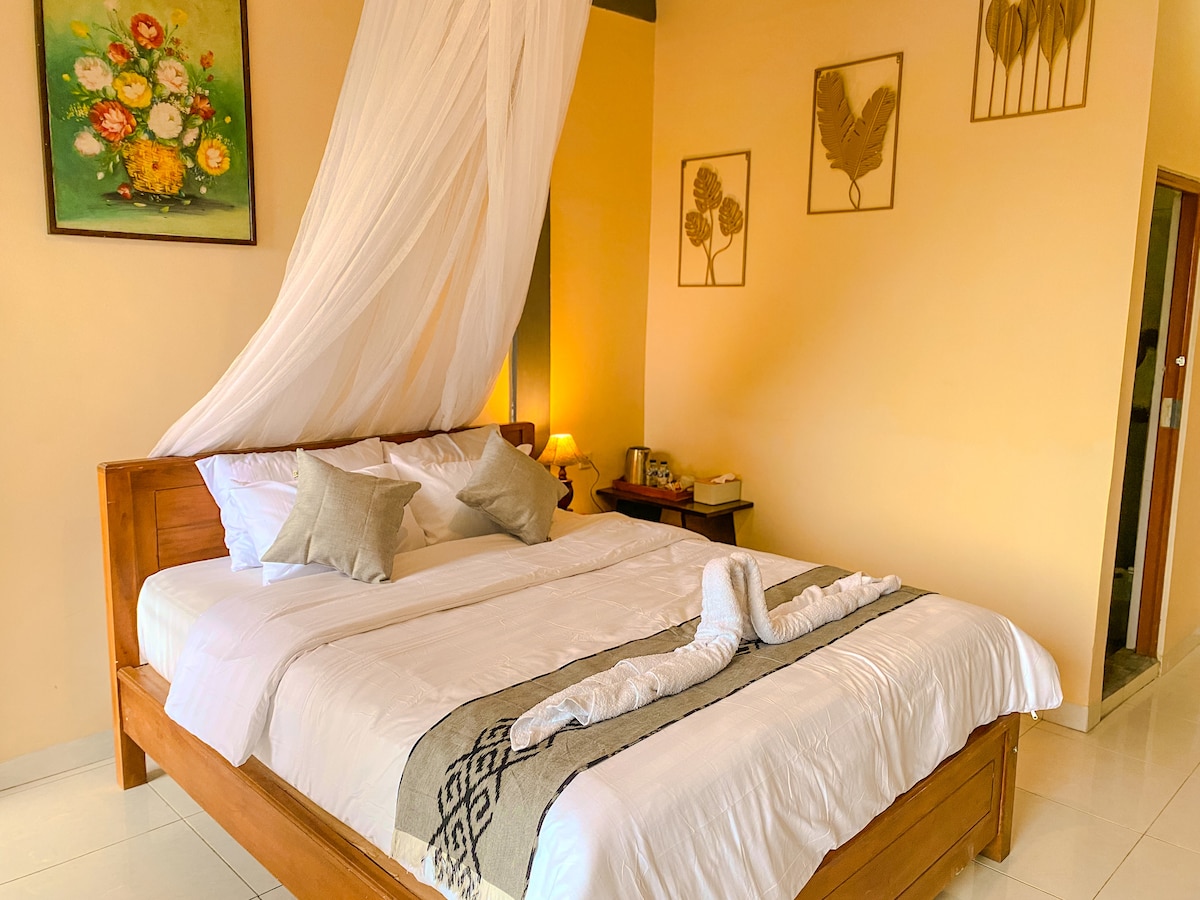 Immergiti nel design tradizionale e nel comfort, completo di lenzuola e asciugamani puliti, aria condizionata e letti comodi per un sonno perfetto. Ogni camera include un armadio e un portasciugamani, nonché un'area salotto privata all'aperto per il relax. Fai una breve passeggiata di due minuti fino alla spiaggia, dove potrai ammirare i delfini giocosi o cenare nei deliziosi ristoranti e Warung nelle vicinanze. Non perdete le attrazioni vicine come cascate mozzafiato e templi mozzafiato.