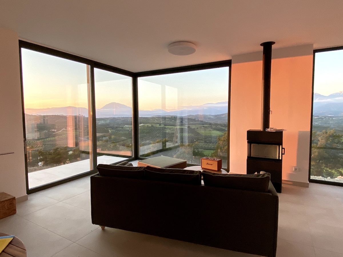 Relax under the bright Mediterranean sun, enjoy the magnificent Cretan landscape as well as a fantastic sea-view from this amazing villa, built at the foothill of mythical mount Ida amidst olive groves and sheep farms, in a quiet secluded village.