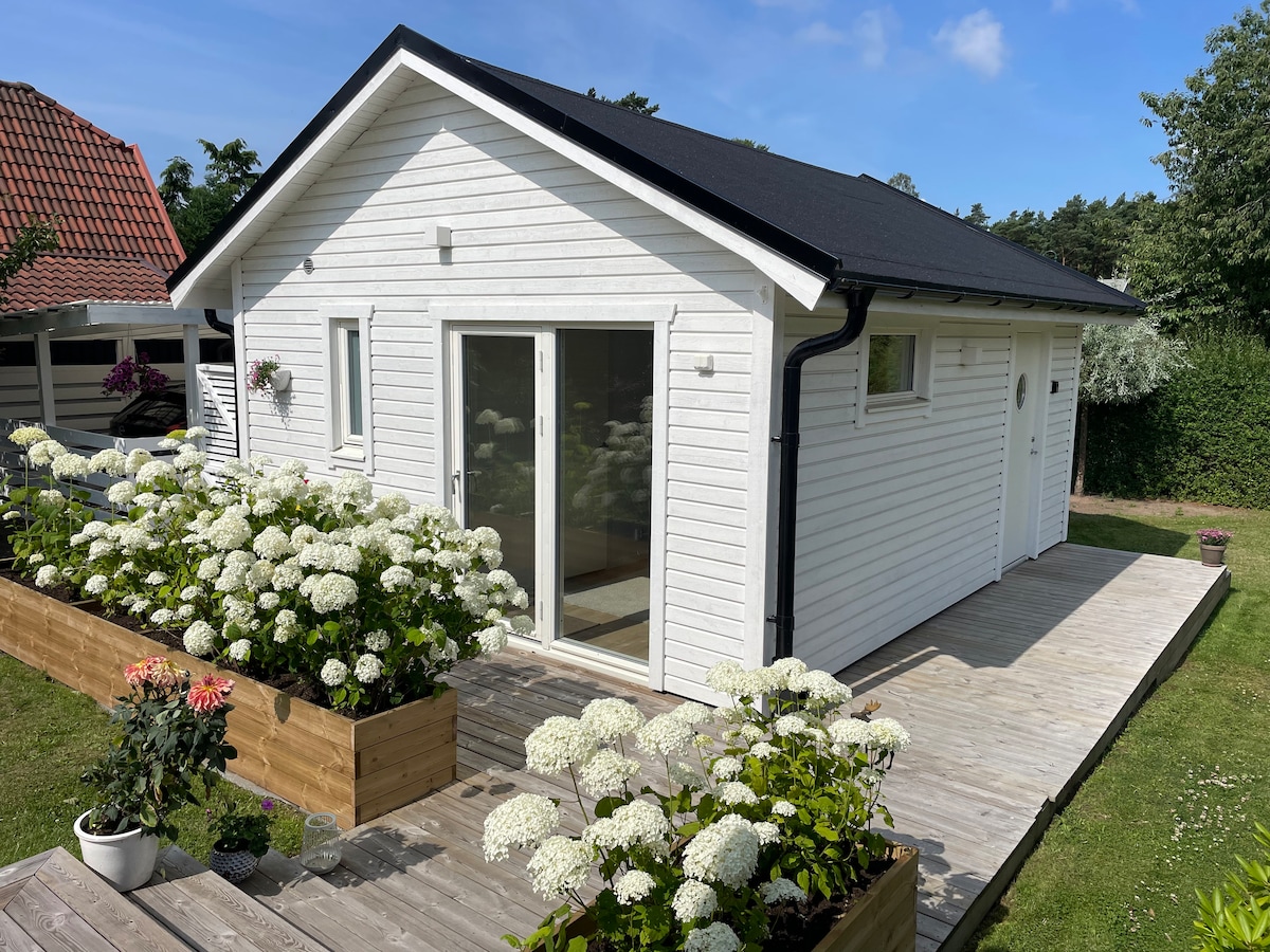 Benvenuti nel nostro fantastico cottage accogliente, Björkhaga Cottage. Il cottage è situato in una posizione privata, nel nostro giardino, in una zona tranquilla, verde-verde. A 5 minuti dal Falsterbo Horse Show, a 10 minuti dal Falsterbo Resort. Il cottage dispone di un moderno bagno e di un'accogliente terrazza esposta a sud. Il cottage è dotato di pompa di calore/aria condizionata ed è invernale. Vicino all'oceano, ai ristoranti, ai negozi e ai campi da golf. Visita l'incredibile Måkläppen. Qui i nostri ospiti sono ben accolti e possono trascorrere un piacevole soggiorno rilassante.