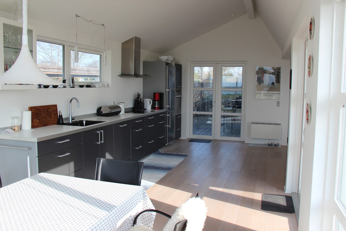 Moderna casa sulla spiaggia costruita nel 2021 a soli 25 metri dal bordo dell'acqua con una splendida vista panoramica sul Kattegat. Cucina completa e arredi moderni. Parcheggio gratuito davanti alla casa. Hasmark ha una spiaggia adatta ai bambini e si trova a 10 minuti dalla pittoresca Enebærodde. Nelle vicinanze ci sono molte attività: parco giochi, parco acquatico, minigolf. Animali e fumo non ammessi. RICORDA DI PORTARE: (può anche essere noleggiato previo accordo): Lenzuola + Lenzuola + Asciugamani da bagno PREZZI: - Elettricità per kWh (0,5 EUR) - Acqua per m3 (10 EUR)