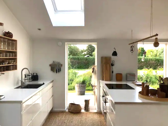 Bo på landet i vores træhus på 140 m². Huset har tre soveværelser: to med dobbeltsenge og et med to enkeltsenge, som kan slås sammen til en dobbeltseng. Der er desuden en sovesofa i stuen, som kan benyttes efter behov. Du er velkommen til at nyde vores store have på 15.500 m² med mange hyggelige kroge og en bålplads. Vi har 15 høns og en hane, der bidrager til den landlige stemning. Huset er i ét plan og har en stor, lys stue og et landligt køkken. Vi bor i et tidligere sommerhus på grunden.