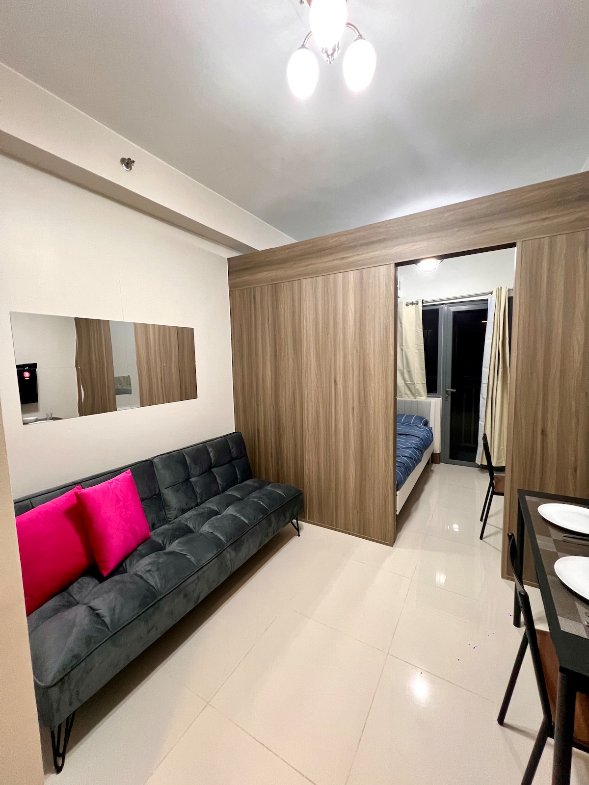 Benvenuti nel nostro arioso monolocale Tahanan, di ispirazione mediterranea e contemporanea, di 25 m² a Mandaluyong, a pochi passi da Rockwell e Powerplant Mall! Abbiamo progettato il nostro spazio per offrire un soggiorno confortevole e, al contempo, viste mozzafiato sul tramonto e su Mandaluyong e Makati dal balcone. Che tu stia visitando la città per lavoro, per piacere o per entrambi, il nostro alloggio Airbnb ben attrezzato è la base perfetta per esplorare le vivaci città di Mandaluyong e Makati.