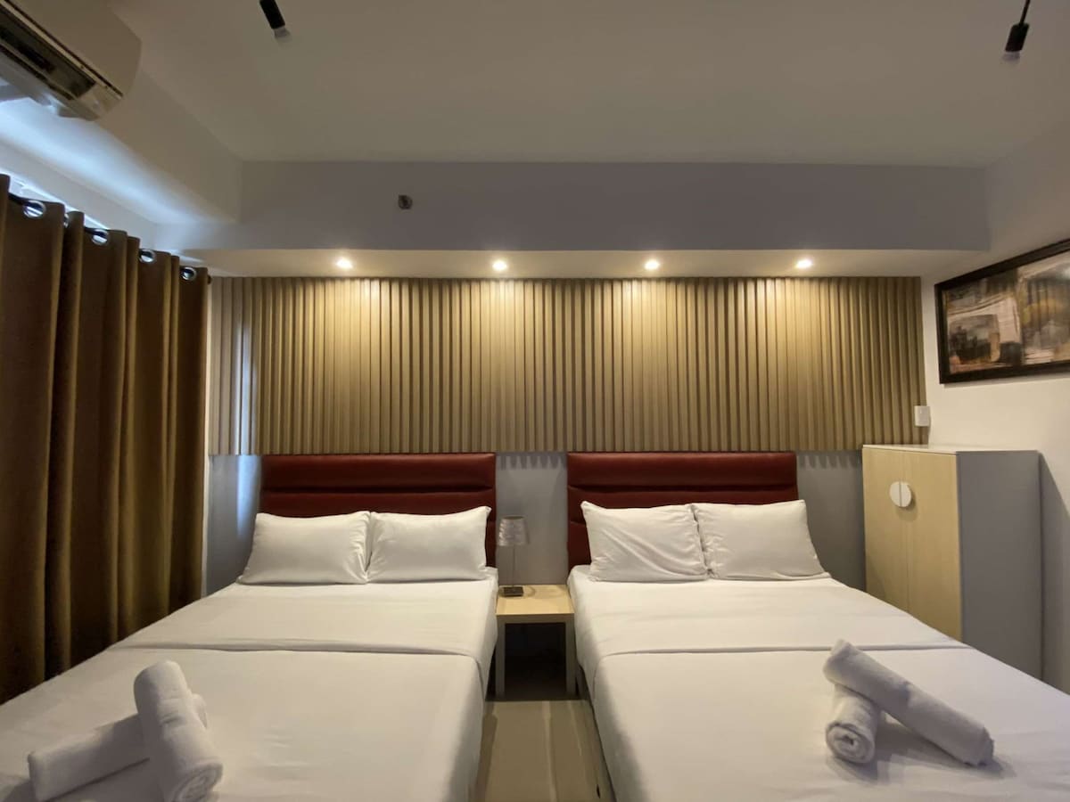 Questo spazio unico ha uno stile tutto suo. Si trova in posizione centrale ed è perfetto per viaggiatori singoli, coppie e piccoli gruppi che vogliono esplorare Makati e altri luoghi all'interno o all'esterno della metropolitana per svago, lavoro o affari. Recentemente ristrutturato e arredato con utensili da cucina completi e articoli da toeletta gratuiti per la tua comodità. A pochi passi dal centro commerciale Greenbelt e dai parchi più famosi. Supermercati, club, caffetterie, ristoranti, ospedali e banche sono a portata di mano.