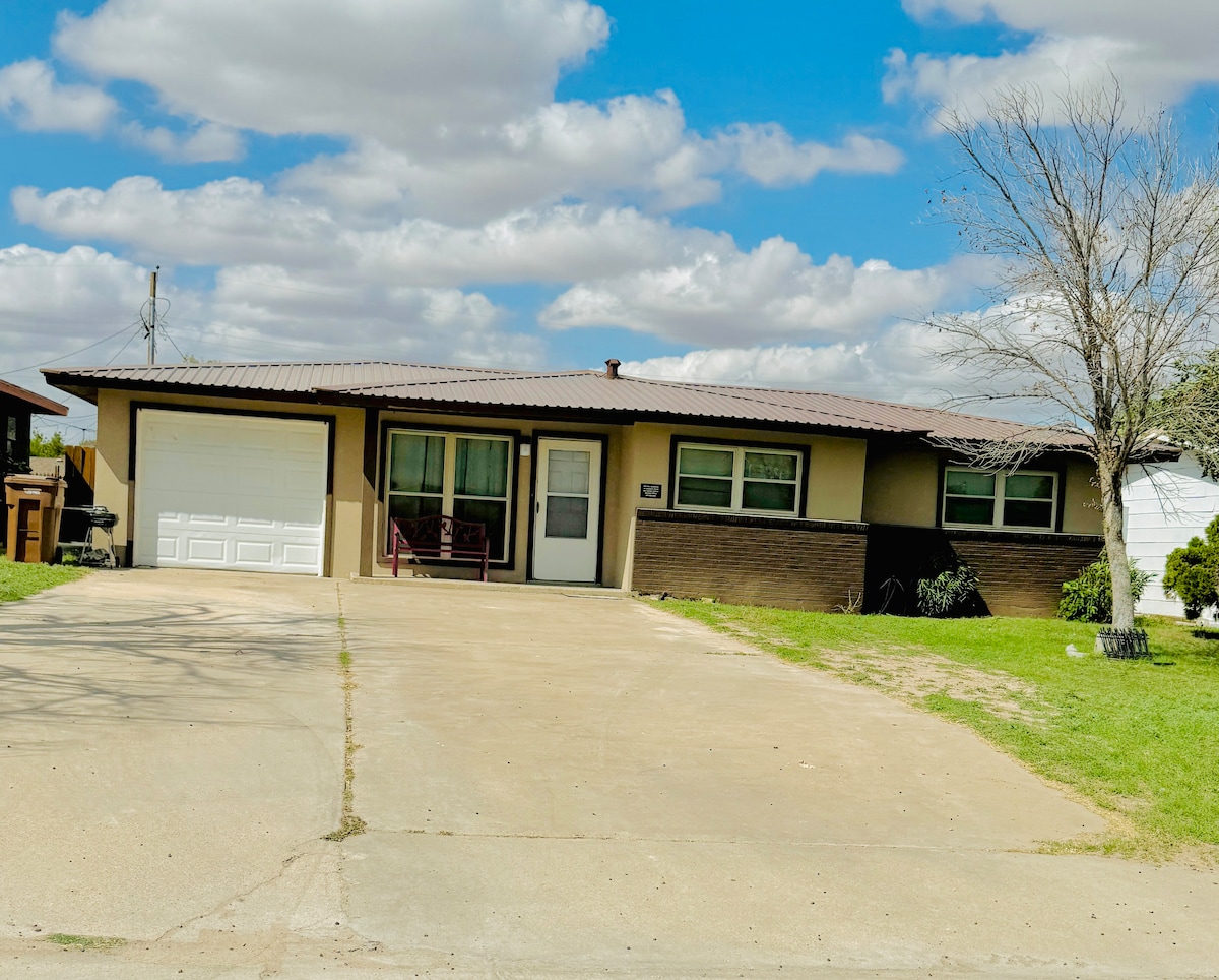 Benvenuto nella tua casa lontano da casa in posizione centrale a Big Spring, in Texas. Ideale per visitare le attrazioni locali e per famiglie. Goditi il WIFI di tutta la casa con smart TV ROKU in ogni camera da letto e nel soggiorno. Una cucina attrezzata è fornita per la tua comodità. Pianifica una serata rilassante sotto il nostro patio coperto! Affitti a lungo termine, infermieri, aziende e assicurazioni accettati. La casa è pet friendly/cani a soli 15 libbre o meno. Gli animali domestici devono essere rotti in casa e addestrati al canile. L'animale domestico deve essere approvato.