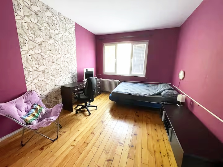 A 107m2, 3-room separate apartment in the heart of Sofia. Just a 10-min walk from the National Palace of Culture and the popular Vitosha Blvd. A lot of public transport lines nearby. Located on the 2. floor (no elevator) of an old-time building in a green and quiet street. There is a backyard garden for guests and building residents. No parking space included! Green zone area with specific parking restrictions. Note some personal details are required for each guest. Check-in: after 15:00