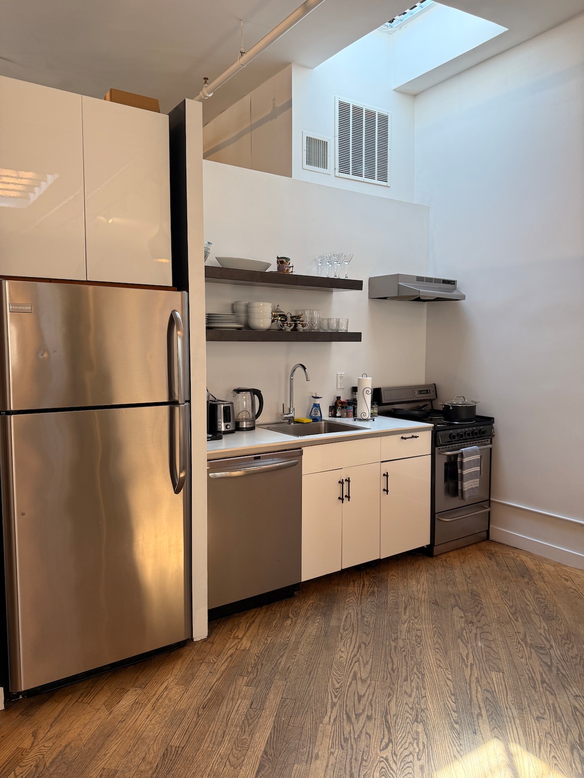 Just Completed Renovation - Experience a true artist loft in Soho! The loft is set up with 3 sleeping areas; large private queen bedroom, sleeping nook, and living area with full pull out sofa, so we can host 5 people total. We are in a Walk Up building, 4 flights. This classic loft is 1800 sqft with high end furniture, a large open kitchen, skylight, central AC and washer dryer. Available for quiet enjoyment. No parties :)