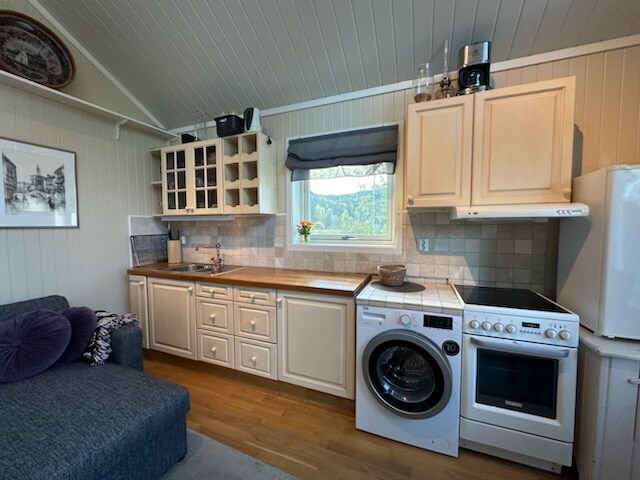 Riduci il battito cardiaco in cima a Stolpehytta! Stolpehytta si trova a 5 minuti da Blaafarveværket nel comune di Modum, proprio accanto al parco di arrampicata Høyt & Lavt Modum. Qui puoi trovare la pace tra le cime degli alberi. Le grandi finestre offrono una vista panoramica sul paesaggio e sul cielo notturno. Costruito in legno massello, con una superficie di 27 m2, offre lo spazio necessario per una vacanza rilassante lontano dalla vita quotidiana. Se desideri attività, puoi noleggiare biciclette elettriche, scendere al parco di arrampicata o esplorare l'ambiente locale.