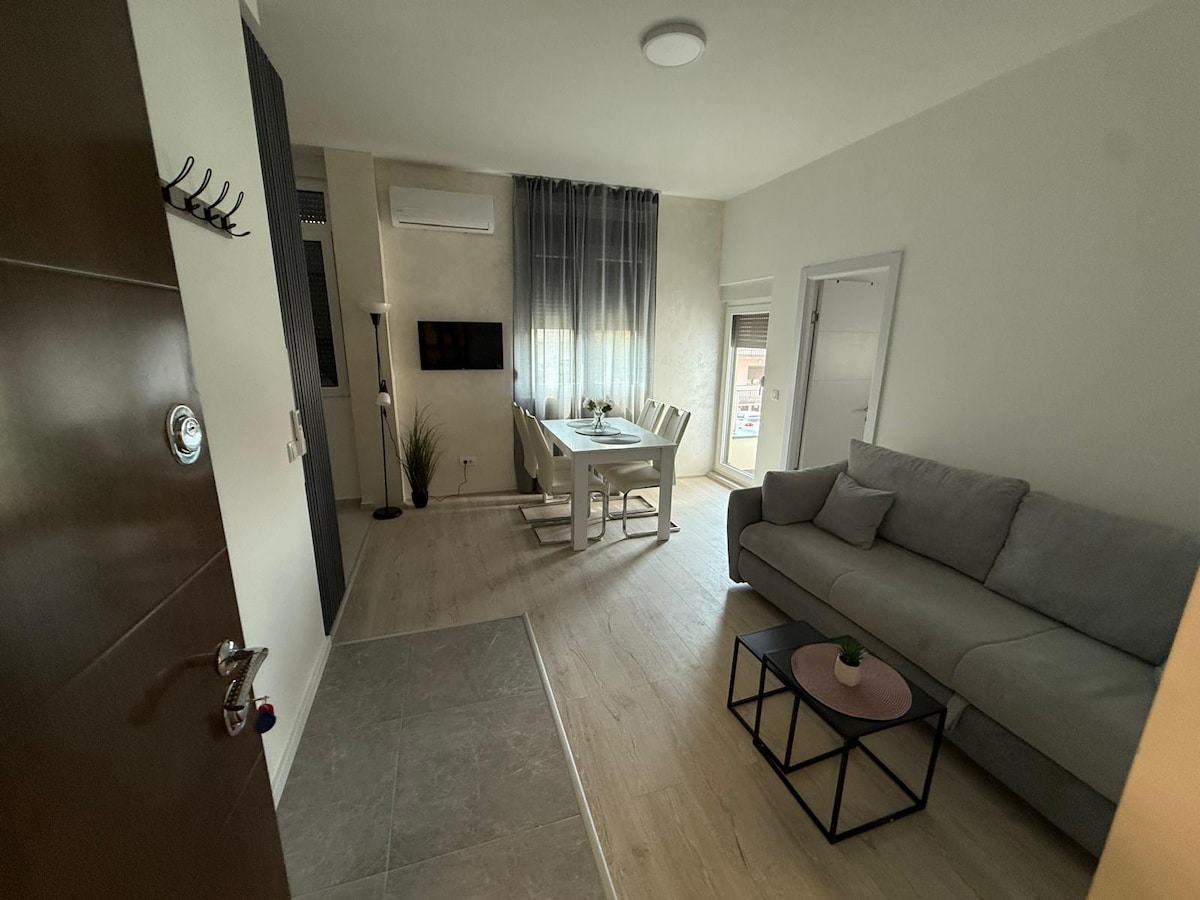 Benvenuti nel nostro elegante appartamento completamente attrezzato nel centro di Sokobanja, adatto sia per brevi che lunghi soggiorni. Questo spazio è accogliente e privato è perfetto per coppie, piccole famiglie o viaggi con gli amici. Dispone di un'accogliente zona giorno con un morbido divano che si trasforma facilmente in un comodo divano letto, TV a schermo piatto, zona pranzo, aria condizionata, WiFi. Una comoda camera da letto grande con letto matrimoniale e ampio spazio nell'armadio. Cucina completamente attrezzata, bagno, balcone, parcheggio. Check-in autonomo.