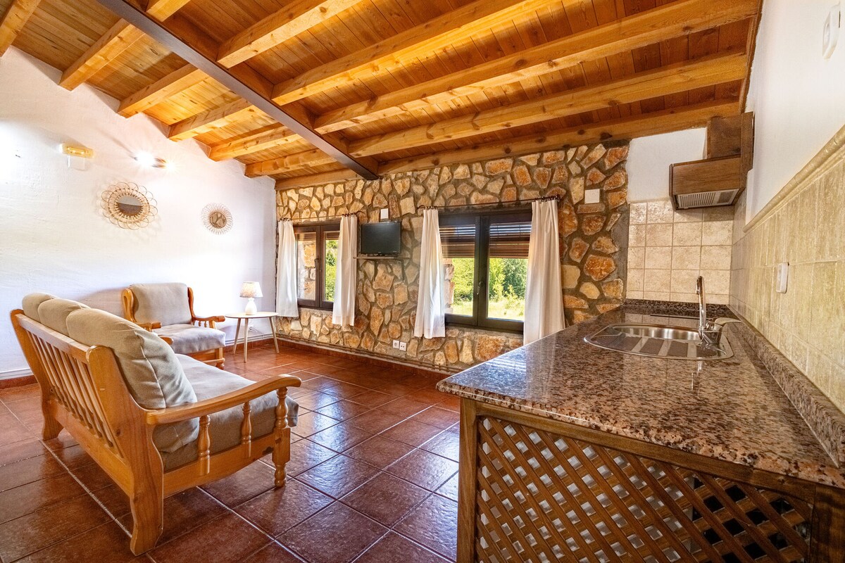 Appartamento in mezzo alla natura decorato in stile country che gli conferisce un tocco speciale con pezzi di design. Rilassati in questa casa tranquilla ed elegante. Ha una capienza massima di 4 persone, ha una camera con letto matrimoniale, un salone con divano letto, un bagno, e la cucina. È completamente attrezzata con tutti i tipi di dettagli. È il luogo perfetto per staccare dalla vita di tutti i giorni ed entrare in contatto con se stessi attraverso la natura.