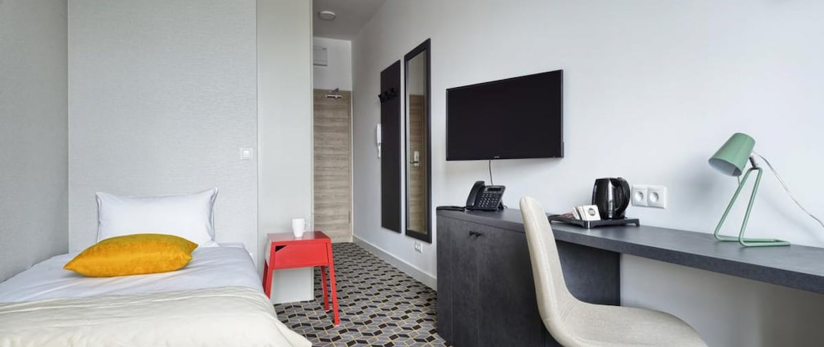 Hotel Superior 4**** Suite standard. Aria condizionata. Reception e guardie 24 ore su 24! Ottima posizione nel distretto centrale con una fermata del treno Airport-Downtown! Negozio di alimentari e caffetteria 6-23 accanto al cancello! Autobus a 100 m. Moderno, accogliente e tranquillo, completamente attrezzato. Aria condizionata. Lavatrice e asciugatrice separate! Parcheggio custodito a 10 m dalla porta! 3 letti fino a 6 persone: 2x2 nel soggiorno e 1x2 in camera da letto separata. TVHD e WiFi 300Mbs! Splendido parco con laghi, piscina, palestra, parchi giochi, montagne russe, ristoranti