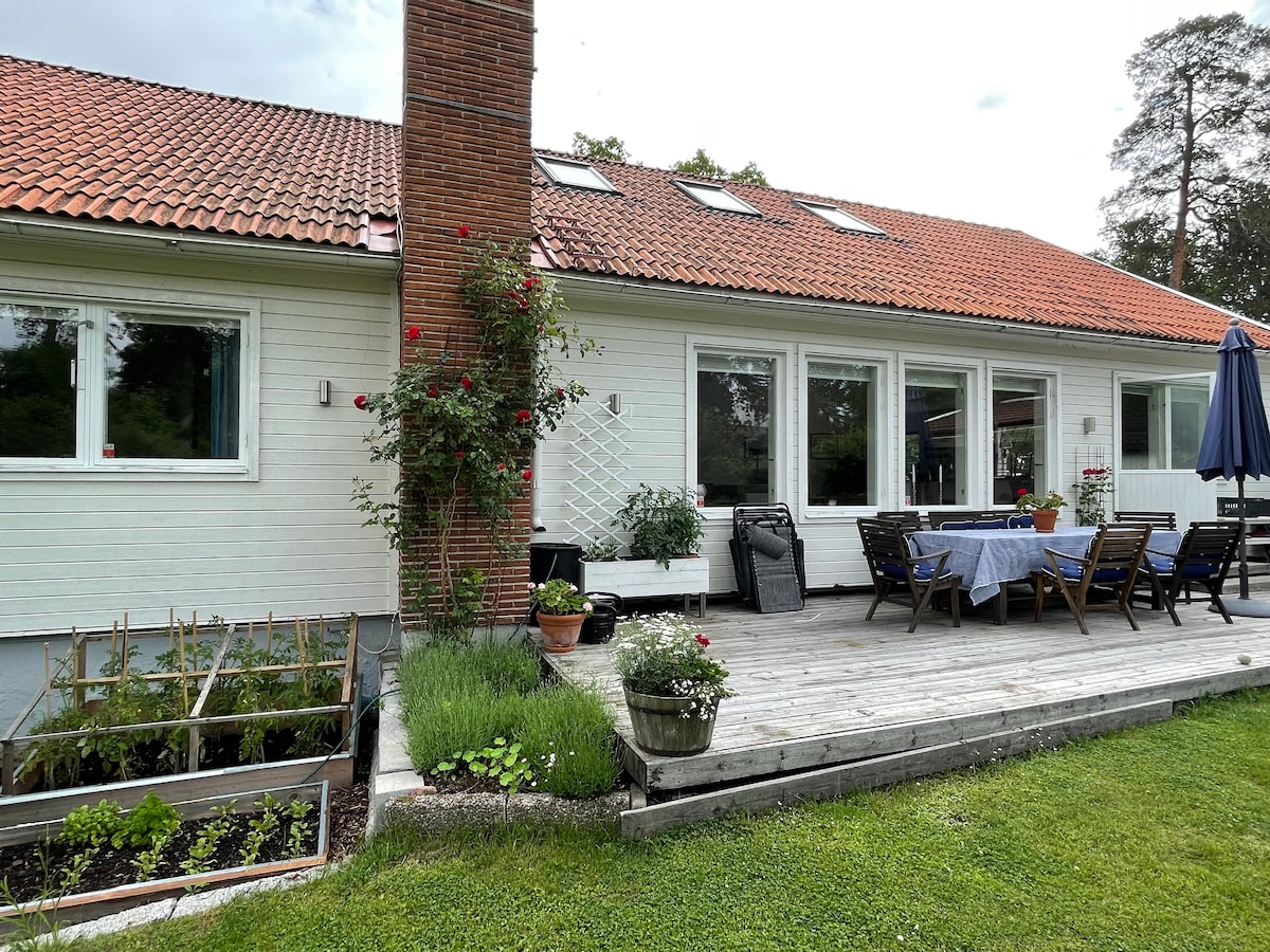 Charming 130-year-old cottage (90 m²) with a modern yet cosy feel. Two renowned spas (Yasuragi & Skepparholmen) within walking distance. Bottom floor: kitchen and dining area with classic wood stove, living room and bathroom. Your own garden and spacious wooden deck—perfect for sunbathing or BBQs. Set in a beautiful area with a crystal-clear lake for bathing just 200 m away, with a nature reserve surrounding it. Sea dock ~700 m. 30 minutes to Stockholm by Waxholm boat, bus or car.